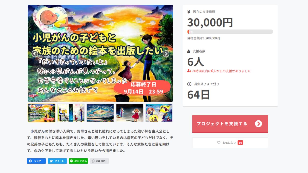 思いを実現させるために、絢子さんは絵本の自費出版に必要な資金を集めようと、クラウドファンディングを立ち上げたのです。