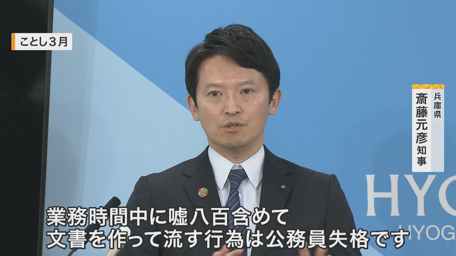 【兵庫県 斎藤元彦知事 3月】「事実無根の内容が多々含まれている。名誉棄損や信用失墜。綱紀粛正。看過できない。業務時間中に“嘘八百”含めて、文書を作って流す行為は公務員失格です」