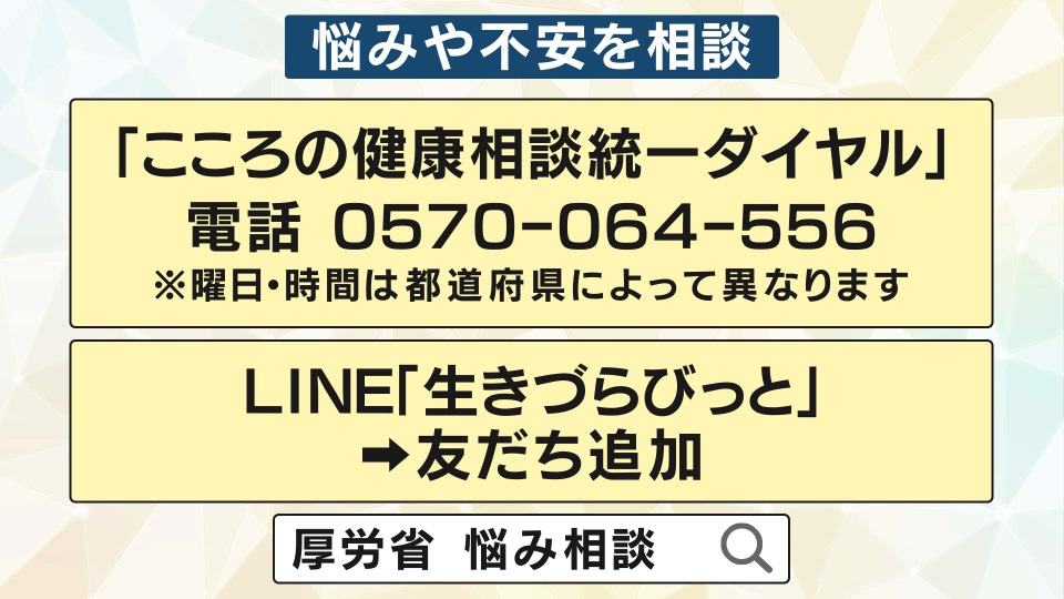 生きづらさを抱えた人たちのための相談窓口があります。専門の相談員が悩みを受け止め必要な支援策などについて一緒に考えてくれますので、相談するようにしてください 。