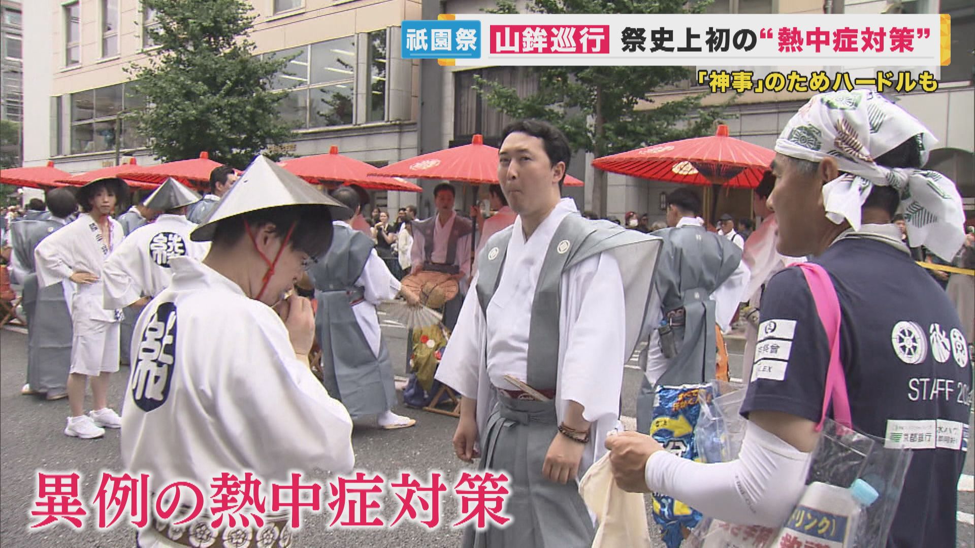 【祇園祭 山鉾連合会 山口敬一事務局長】「今は連合会としても『飲みたいときは飲んでください』と。ちょっと止まったところで、あんまり下品にならないようにペットボトルの水を飲むとか、おしぼりで拭うとか、こういうことは最近やっても問題ないという風な形で」