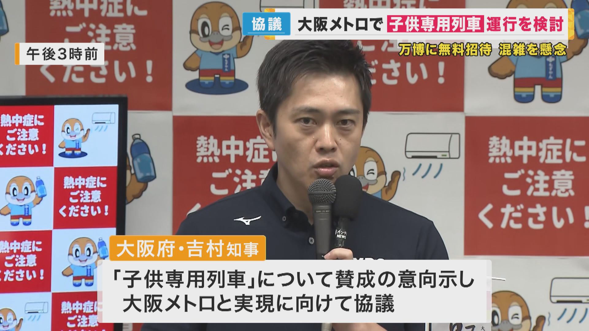 大阪市の横山市長は、来年の万博に子どもたちを無料で招待する事業をめぐり、大阪メトロで「子ども専用列車」の運行を検討する意向を示しました。