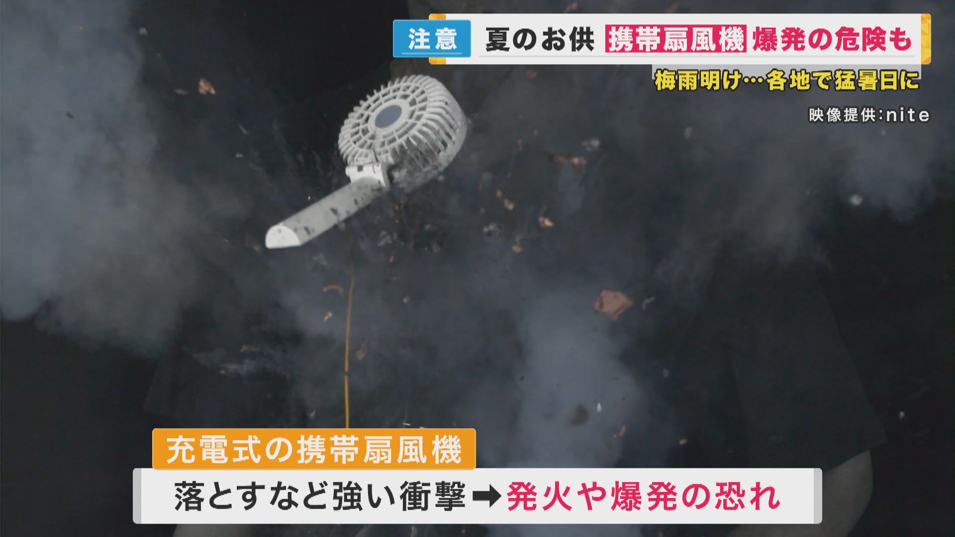夏の外出に便利な「携帯扇風機」 強い衝撃で発火や爆発の恐れ 充電中の発火にも注意