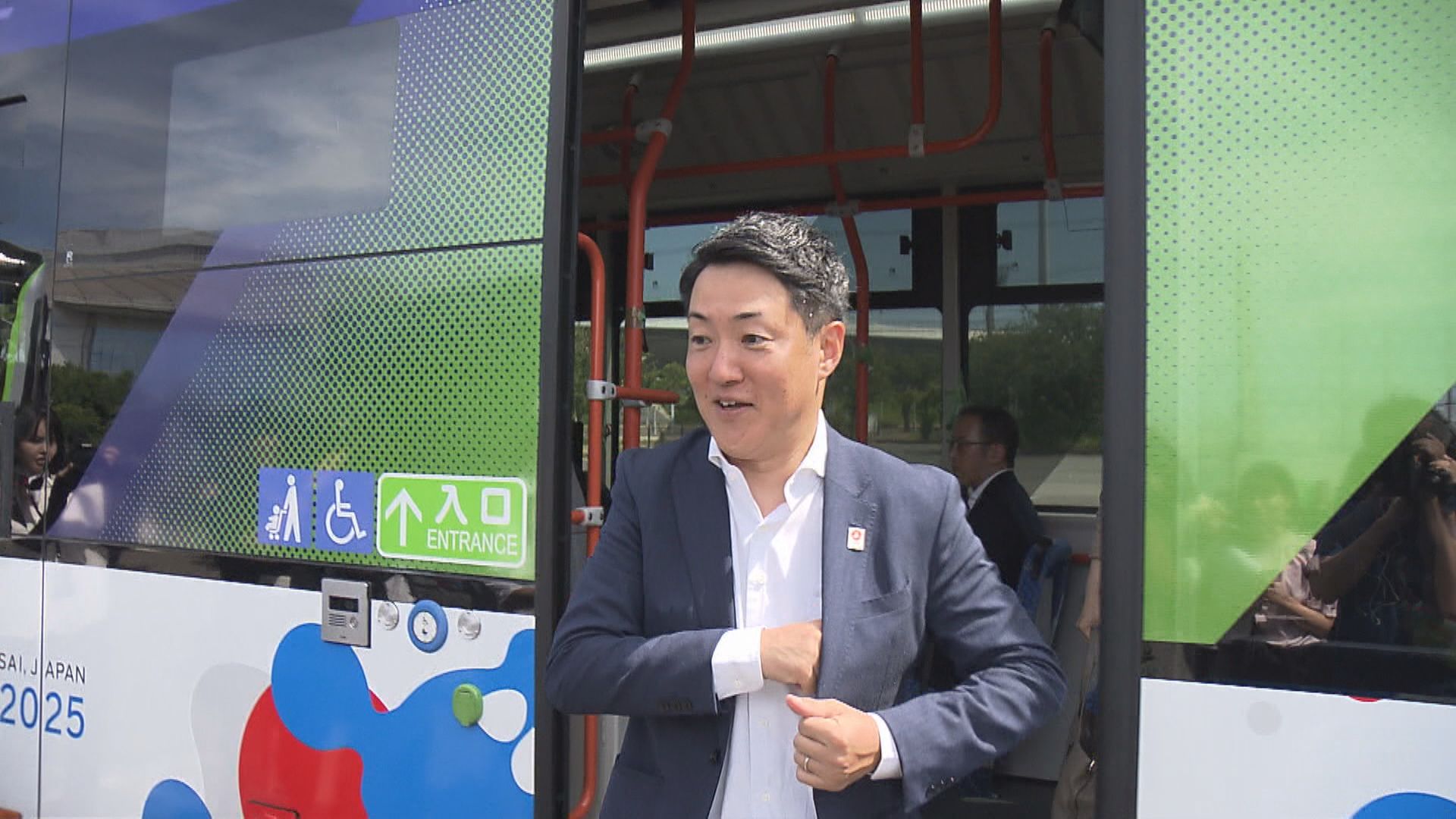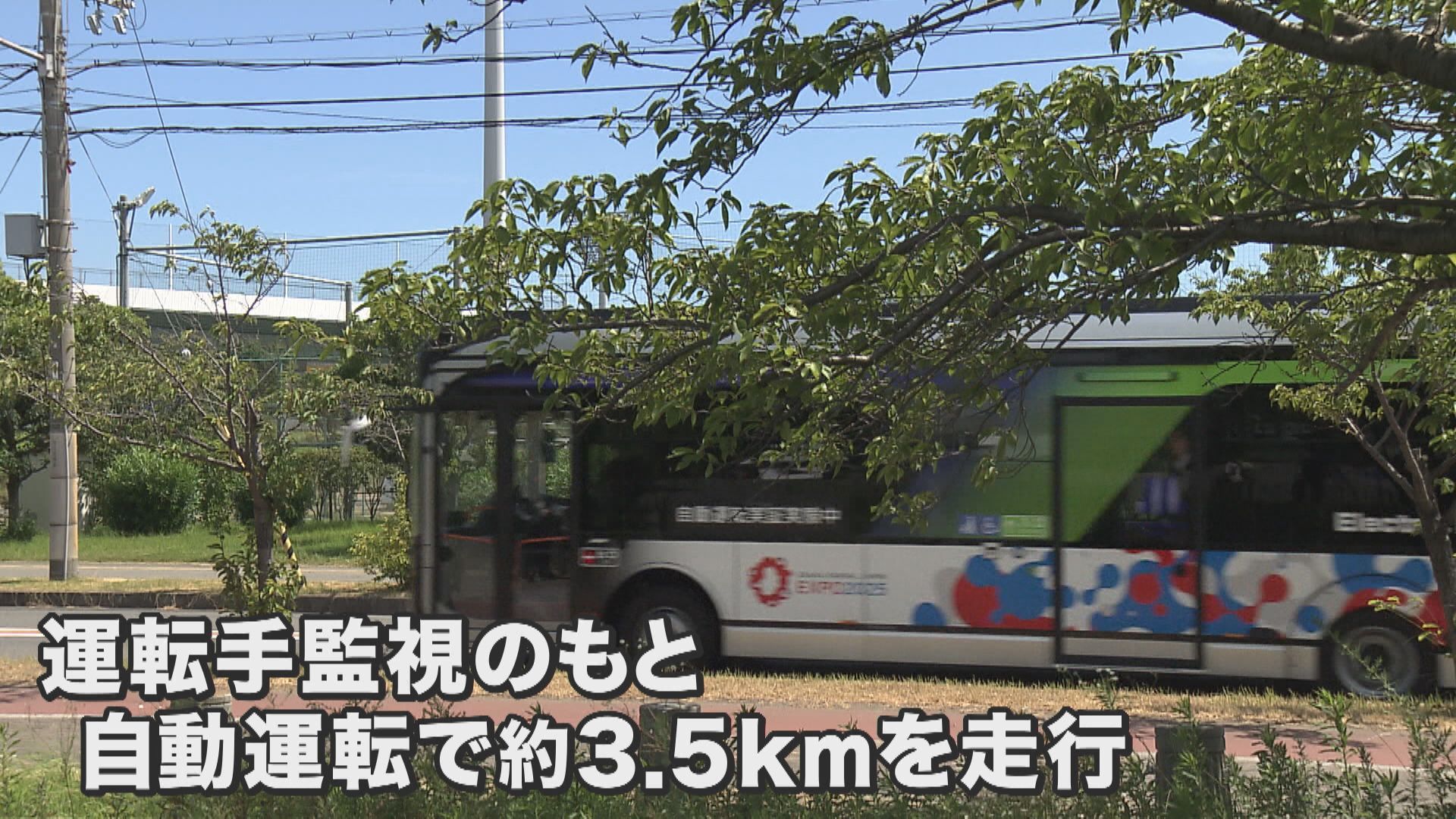 来年の大阪・関西万博で、来場者を会場へ運ぶ自動運転EVバスの試乗会が開かれました。