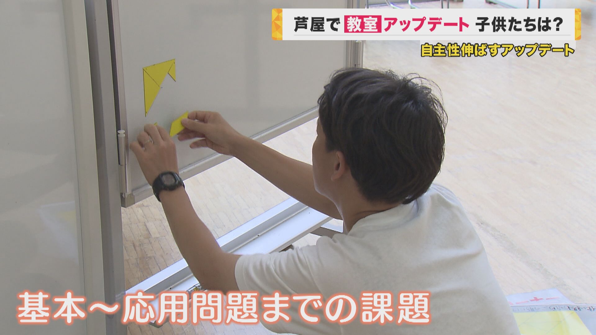【岩園小学校 松尾 駿さん】「環境の作り方とか用意がすごいので、そこを算数でどこまで用意できるかとか。掲示物とかブースとかが作られているところ。見本とかも置いてあったりして。すごいなとは思うんですけど、負担がでかそうやな、と思って…」