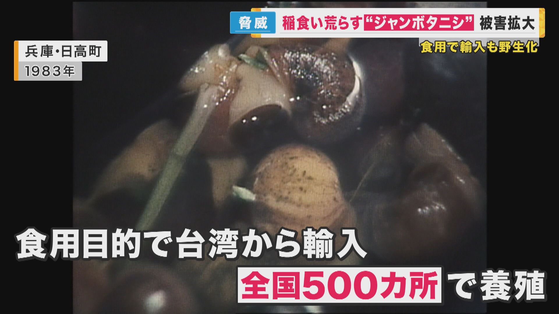 実は1980年代にジャンボタニシは食用目的で台湾から輸入され、兵庫県日高町など全国500カ所で養殖されていたのです。 そしてジャンボタニシの試食会が開かれたことも。