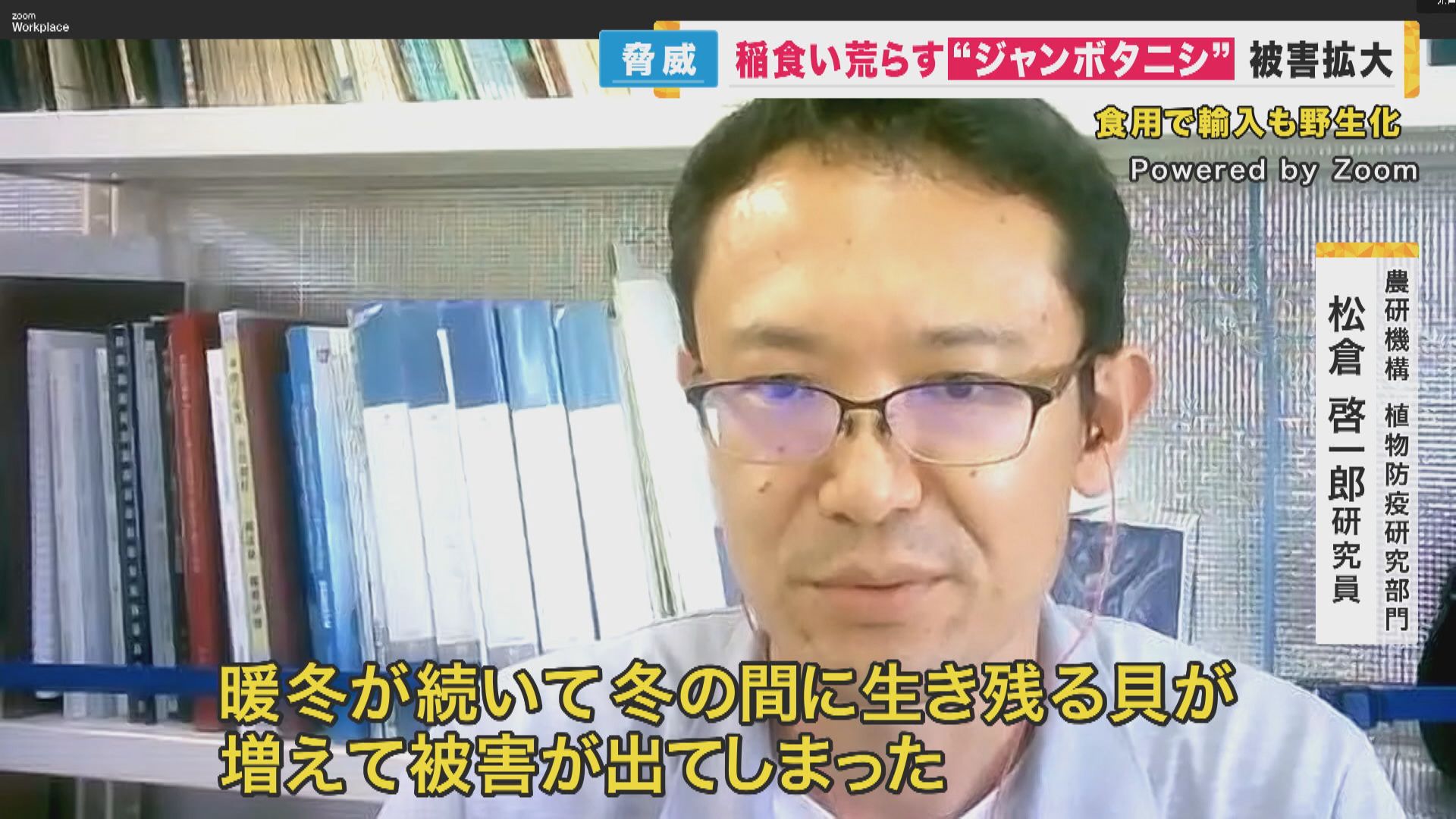 【農研機構 植物防疫研究部門 松倉啓一郎研究員】「冬の間にこの貝はほとんど死んでいたが、暖冬が続いて冬の間に生き残る貝が増えて被害が出てしまった。2018年以降から急激に西日本でも被害が出てきた」