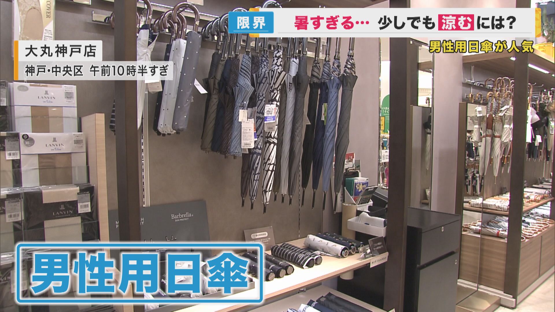 特にニーズが拡大しているのが、男性用の日傘。 神戸市の百貨店では、去年の同じ時期に比べて、3倍ほど売り上げを伸ばしているということです。