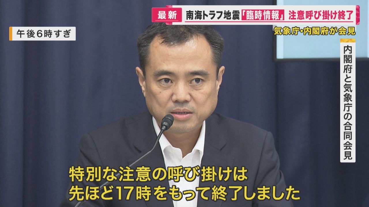 15日、松村防災担当大臣が会見を開き、今月8日に発表されていた、南海トラフ地震の「臨時情報」について、注意の呼びかけを終了すると発表しました。