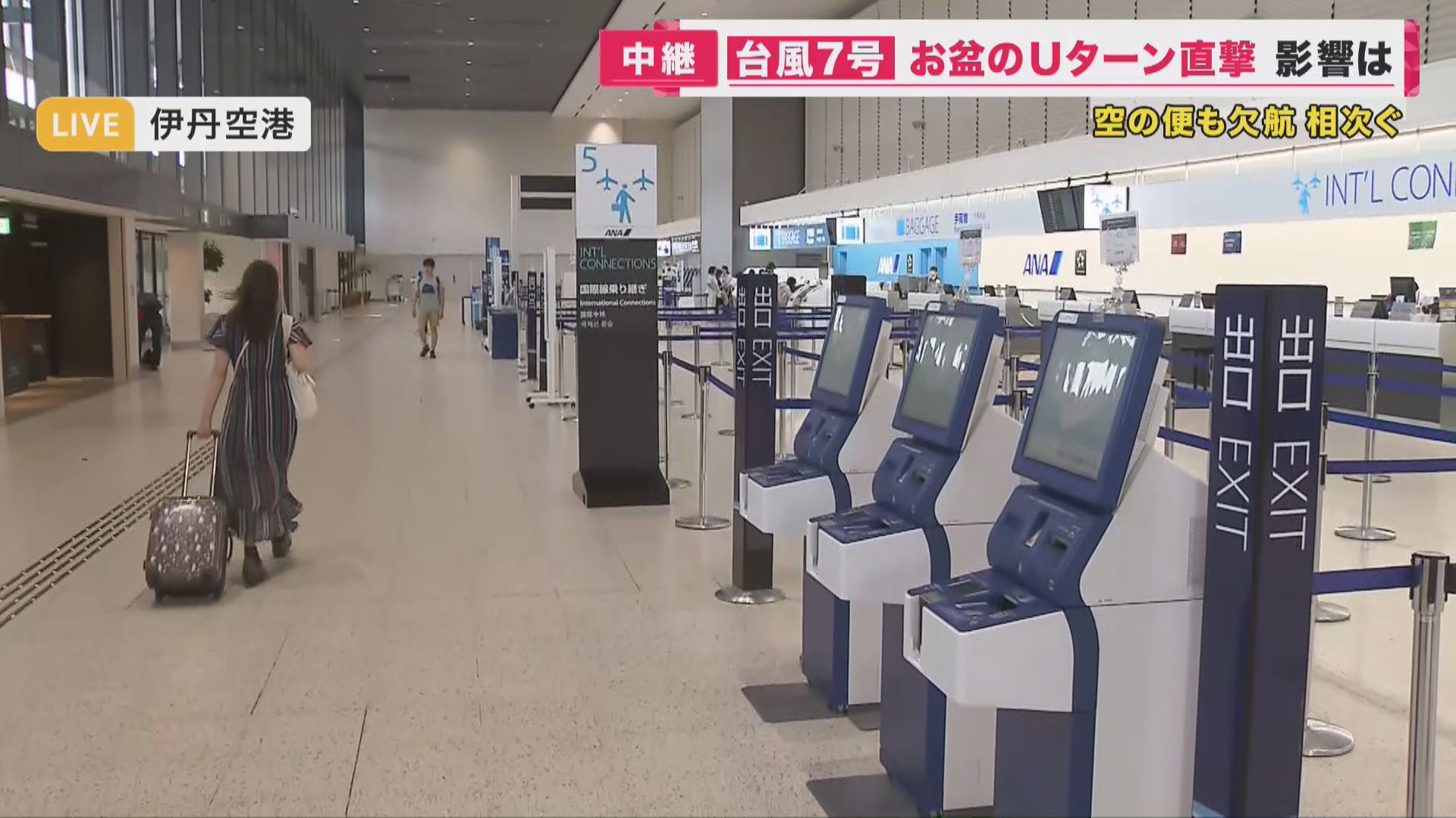 【記者リポート】「伊丹空港のチェックインカウンターからお伝えします。本来であれば お盆のUターンラッシュで、このあたりは人で埋め尽くされるのですが、本日はがらんとしています」