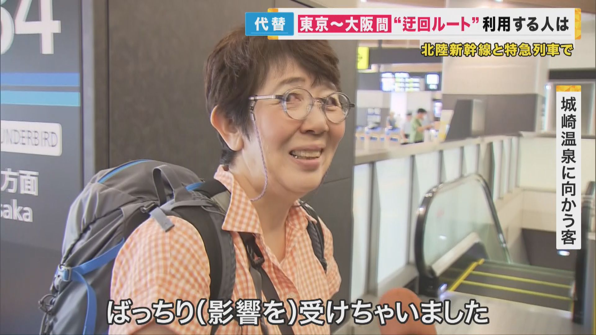 【兵庫・城崎に向かう客】「京都経由で城崎温泉に入るはずが、のぞみに乗れなくて、北陸周りで敦賀に来てサンダーバードで京都に行って、京都から城崎へ…。 ばっちり(影響を)受けちゃいました」 「(北陸新幹線と東海道新幹線)両方あったほうが便利ですね」
