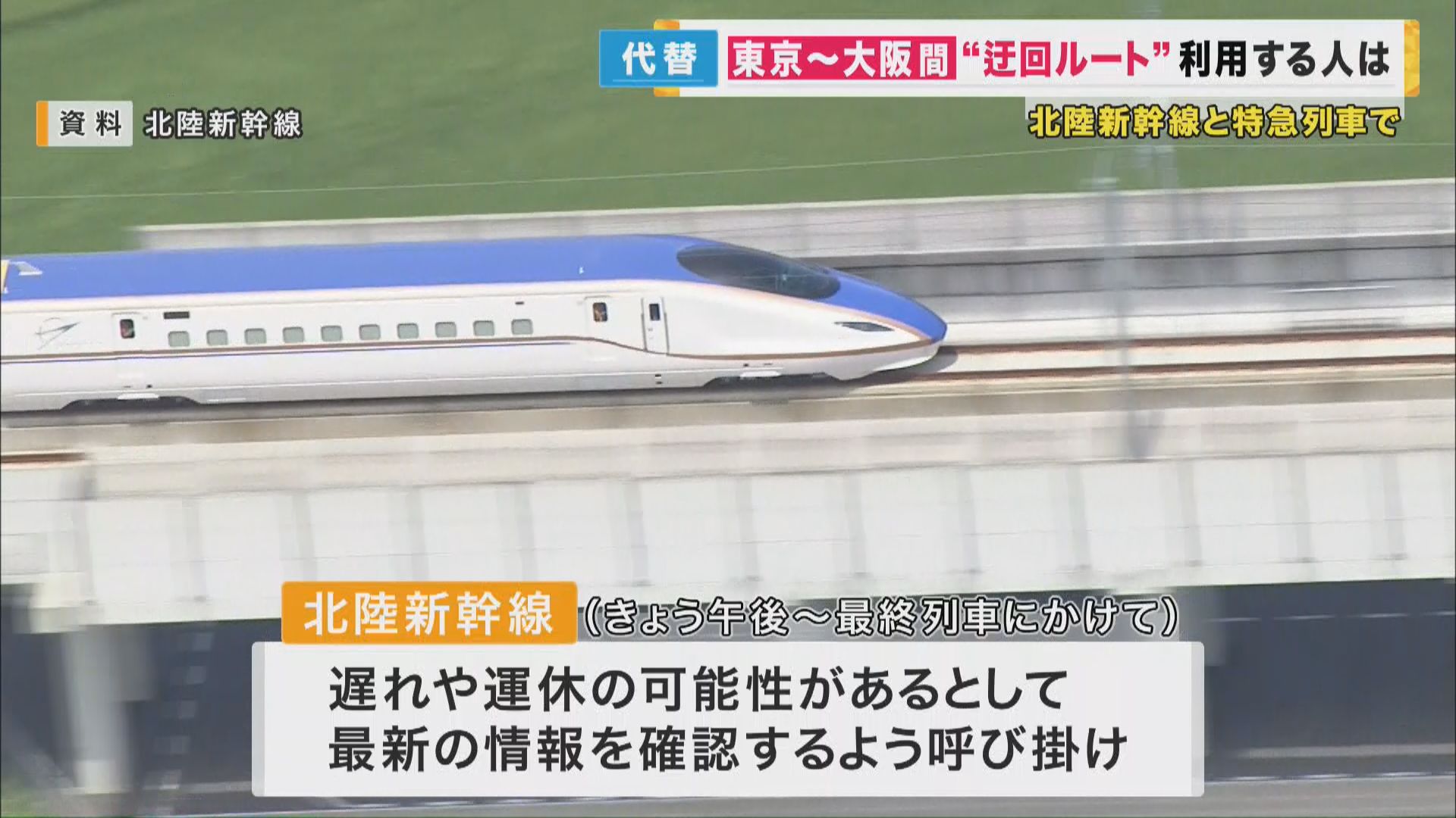 大阪と東京を結ぶ空の便で欠航が相次ぎ、東海道新幹線も東京から名古屋の間で運転を取りやめる中、「迂回ルート」が注目されています。