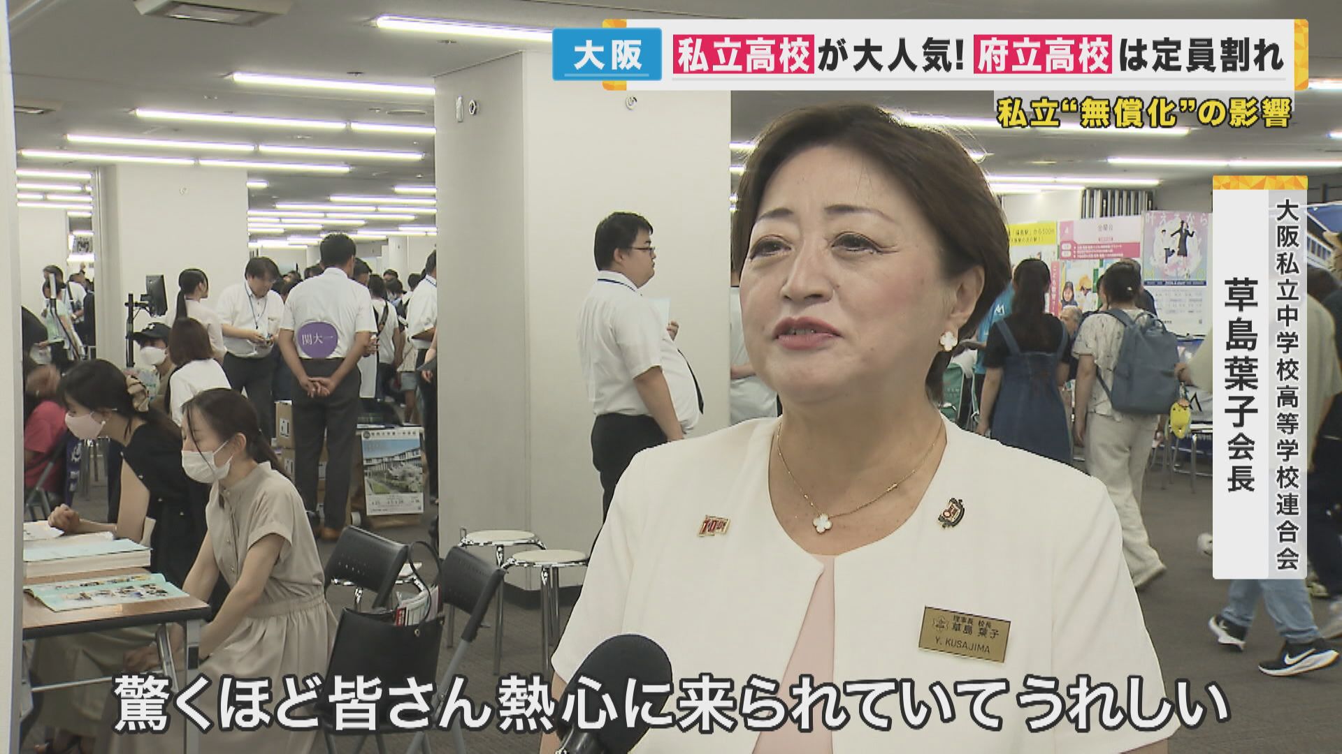 【大阪私立中学校高等学校連合会・草島葉子会長】「驚くほどみなさん、熱心に来られていてうれしいところです。専願で受験なさる方が増えたというのが、一番大きなところでしょうか」
