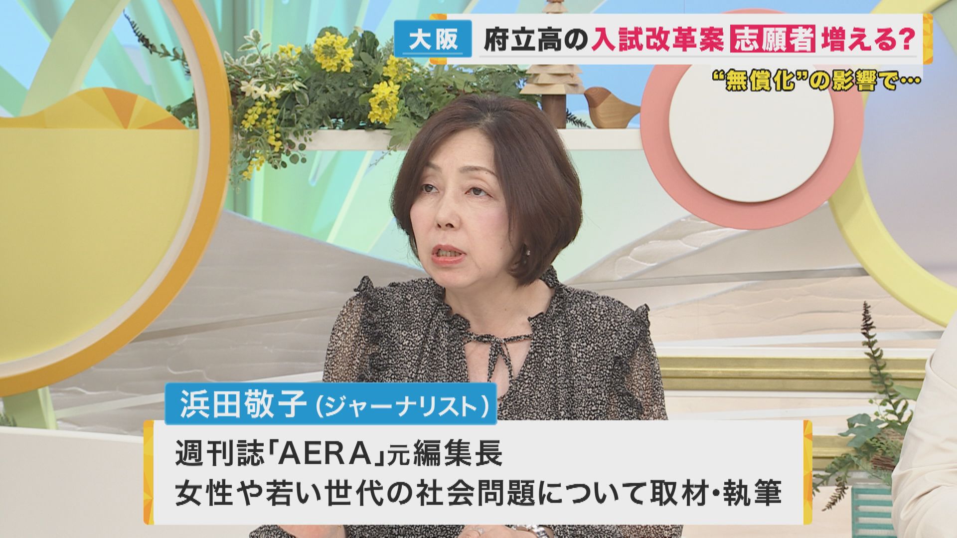 【ジャーナリスト 浜田敬子さん】「完全無償化によって、経済的な理由で私立高校に行くことを諦めることがなくなるっていうのは、選択肢が広がるのでいいことですけども、府立は定員割れになれば、廃校とか休校が増えますよね。