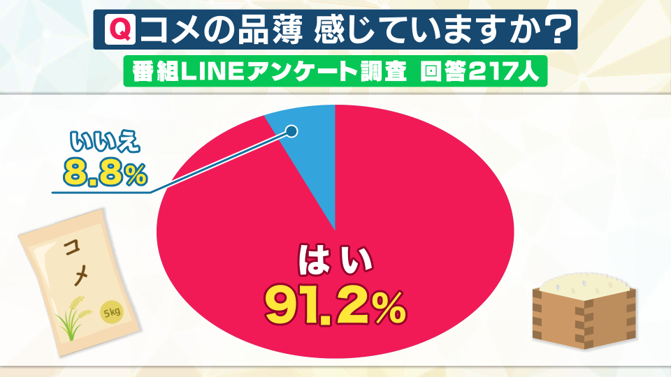 【番組アンケート(ライン/回答217人)】 Q:コメの品薄、感じていますか?
