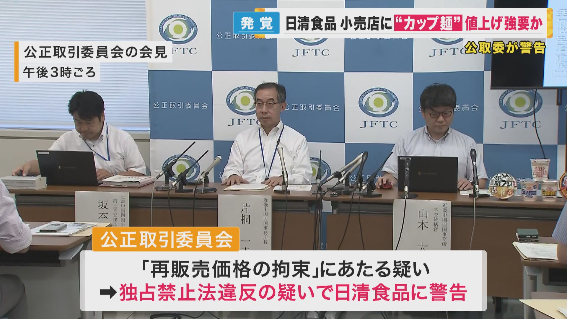 「『カップヌードル』など販売価格引き上げを小売店に強要」日清食品 独占禁止法違反の疑いで警告 公取委