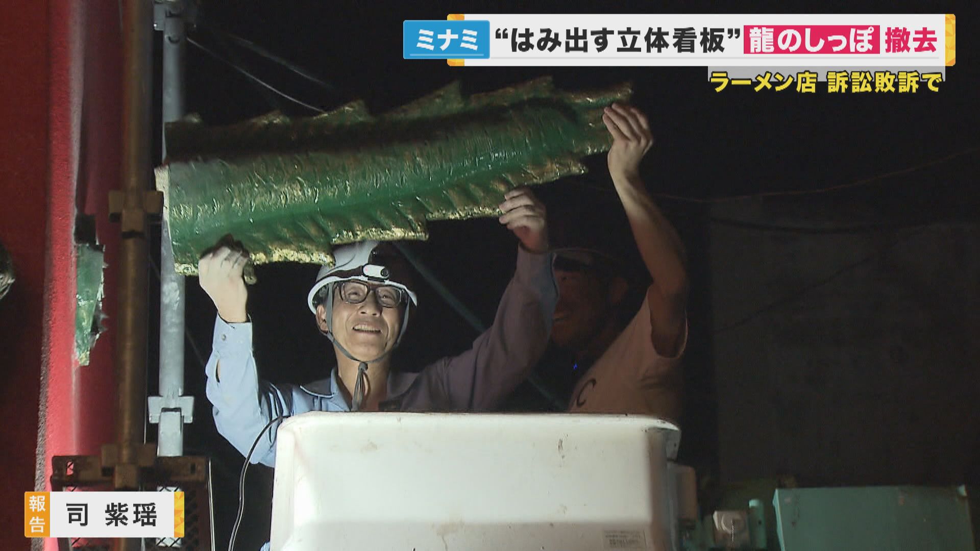 金龍ラーメンしっぽ切り落としの裏側 看板を制作した社長は「私有地にはみ出すとは認識せず」
