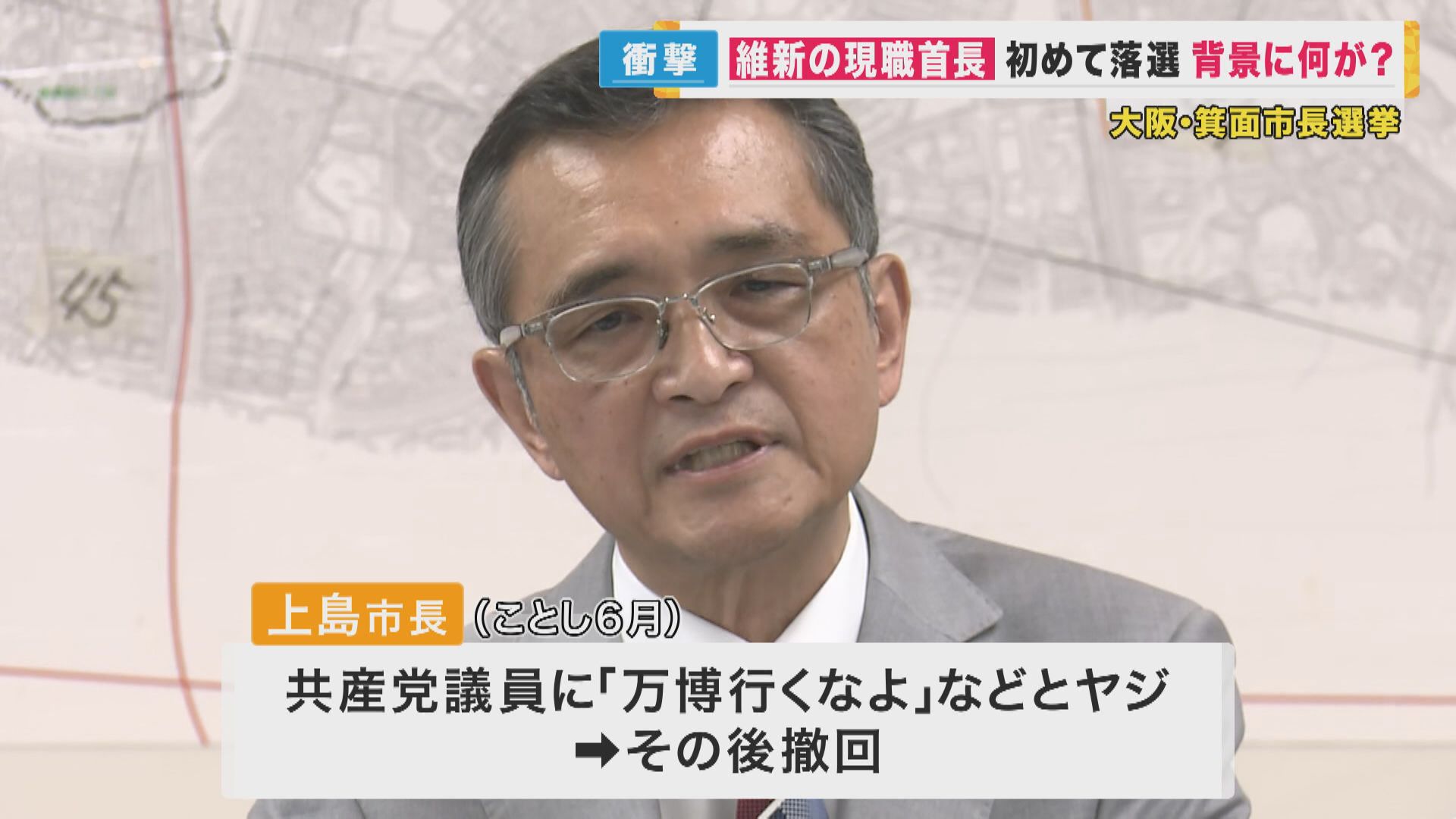 ■現職の上島市長は「万博いくなよ!」「出入り禁止や」とヤジを飛ばし、撤回に追い込まれる