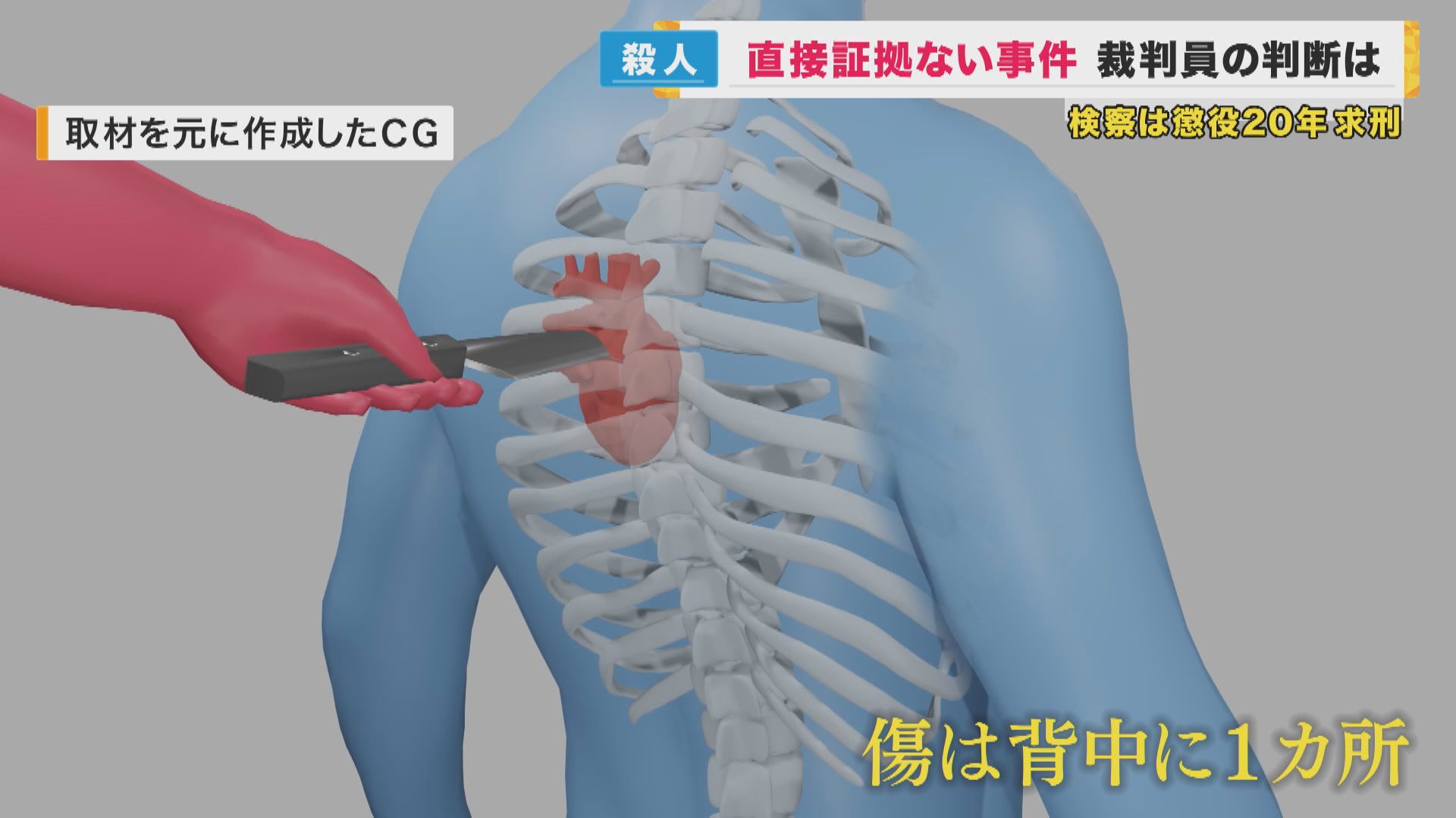 司法解剖の結果、確認された傷は背中に一カ所のみ。 横向きに刺した刃物が肋骨と肋骨の間を通り、心臓に達していた。