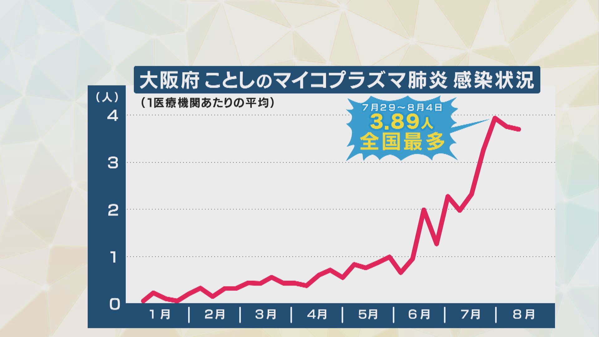 “歩く肺炎”とも言われる感染症が、8年ぶりに大流行、特に大阪で感染が急増しています。