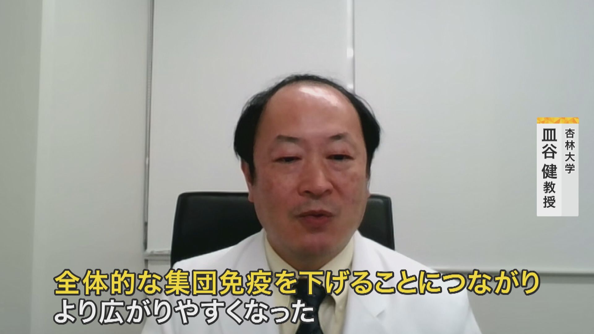 【杏林大学・皿谷健教授】「マイコプラズマ肺炎の感染がない人たちが増えたということが、全体的な集団免疫を下げることにつながり、よりひろがりやすく広がりやすくなった」