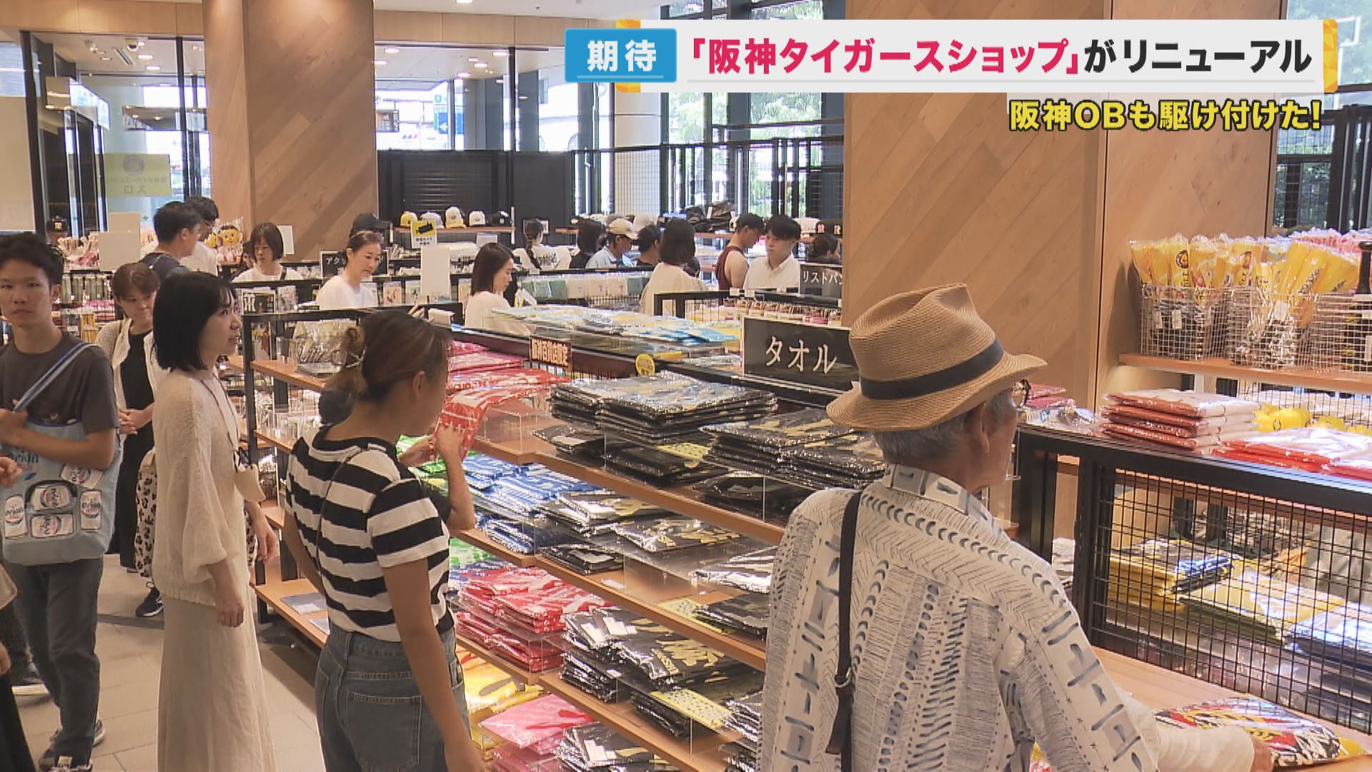 新しい阪神タイガースショップは、リニューアル初日からファンで大賑わいとなりました。