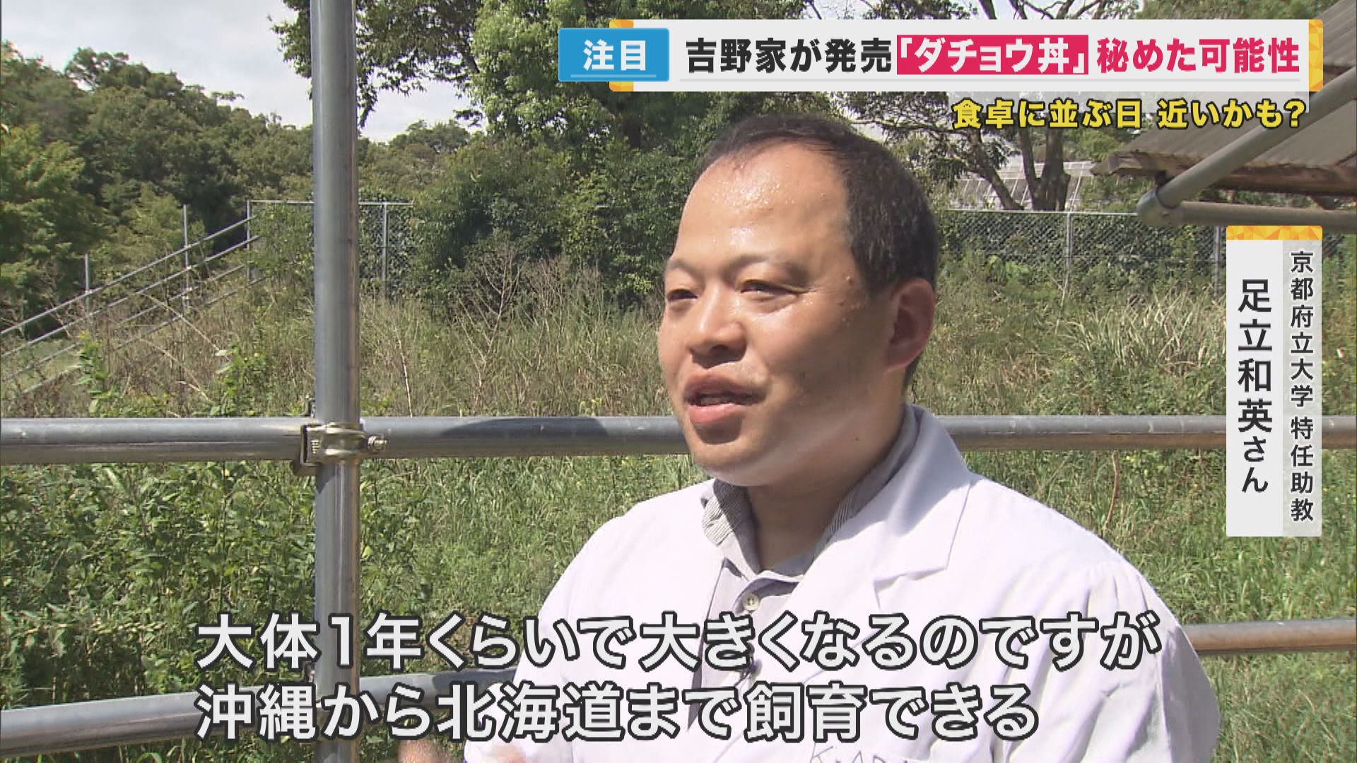 【京都府立大学特任助教・足立和英さん】「大体一年くらいで大きくなるのですが、沖縄から北海道まで飼育できる。BSEという狂牛病がはやったり、家畜は伝染病が流行ったりすると一気に食べられなくなる。鳥インフルとか…。ダチョウは感染症に強い。そういう時に危機回避の扱いとしての肉としてはありかなと思います」
