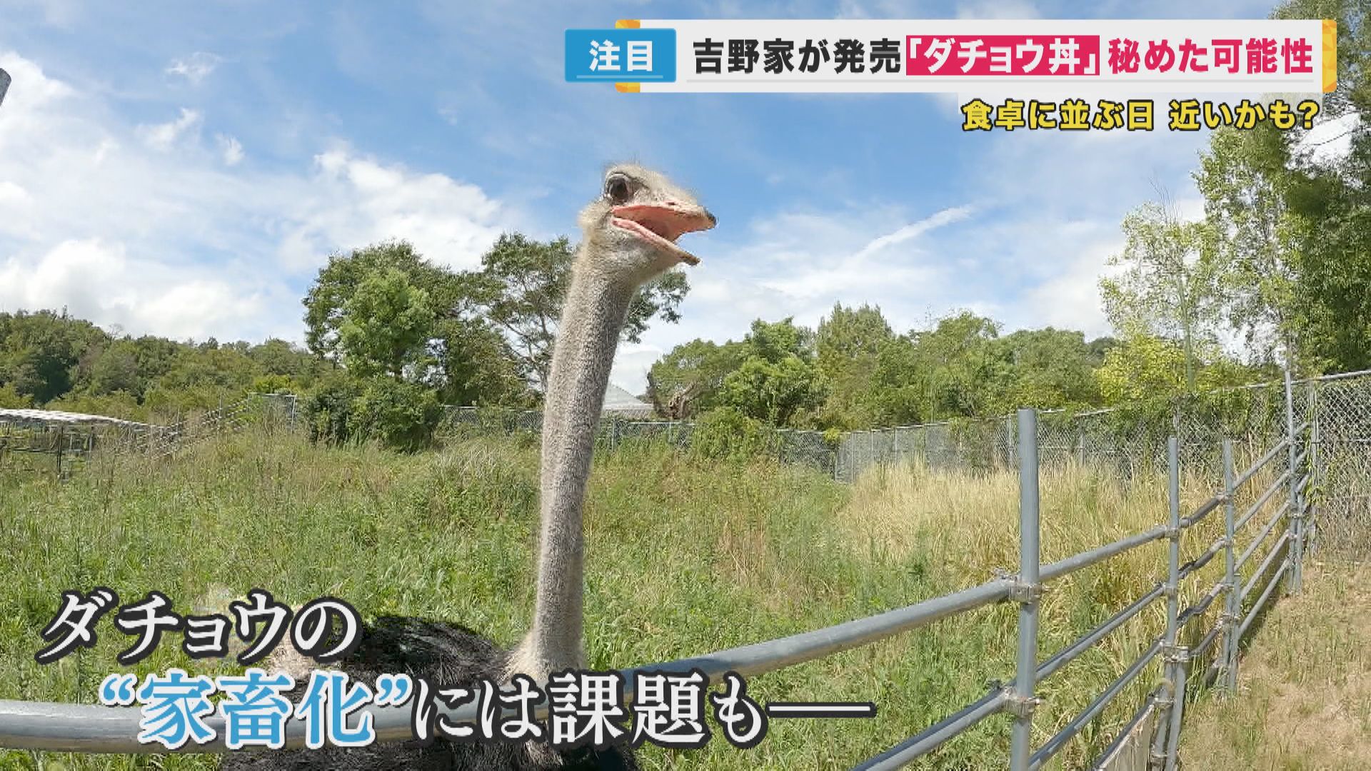 からあげなど、牛肉以外の食材にも力を入れ「畜種分散」を進める吉野家は、2000年代からダチョウに着目、子会社の自社牧場で、ダチョウの畜産を進めてきました。