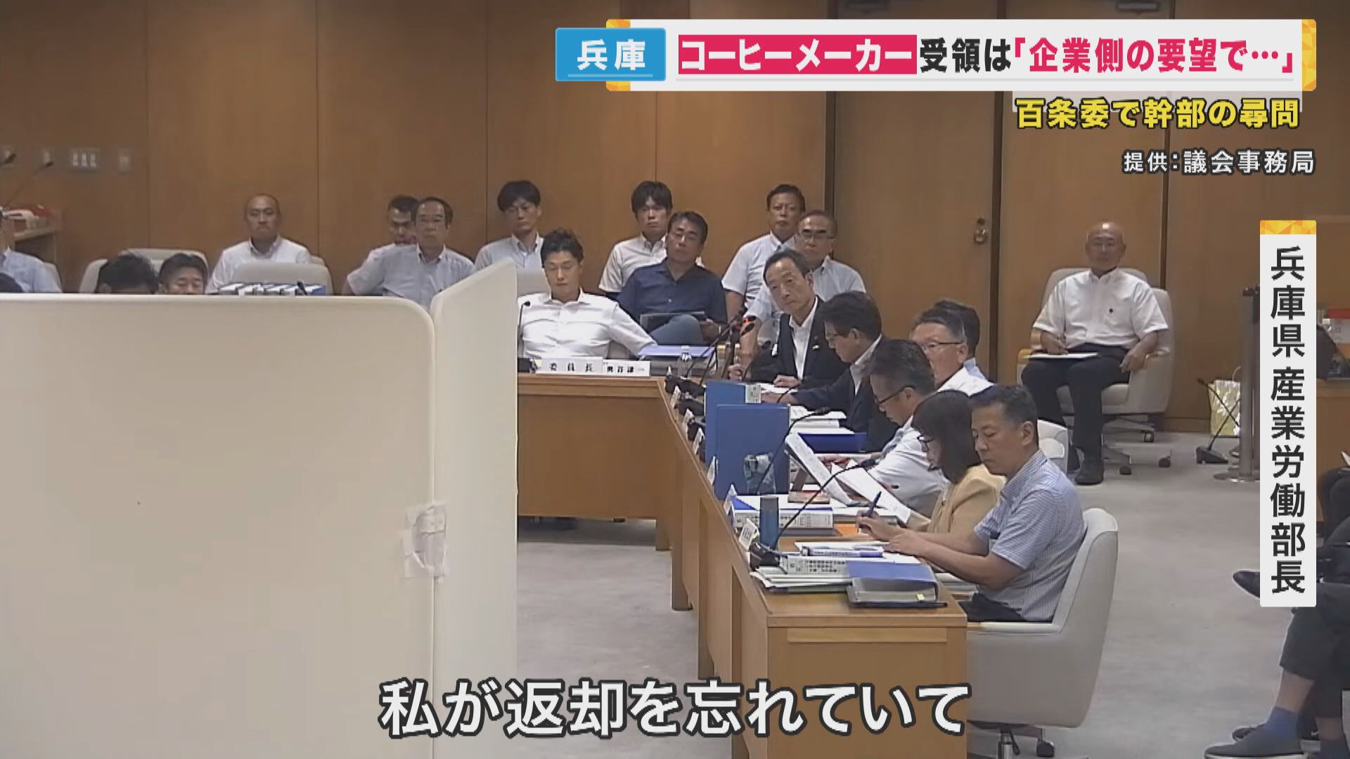 「返却忘れていた」コーヒーメーカーを受け取った兵庫県産業労働部長「企業側からの要望で受け取った」とも