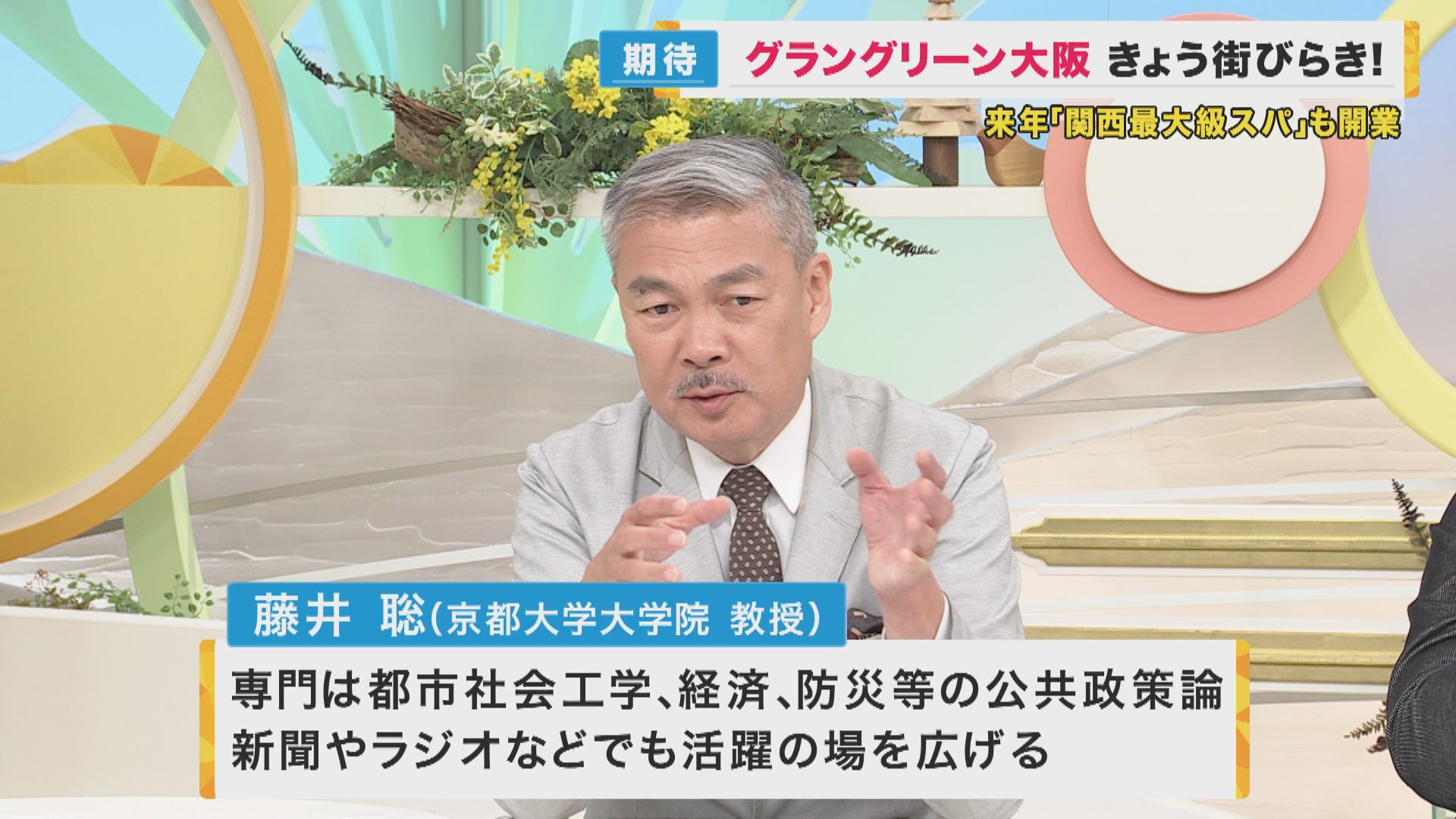 【京都大学大学院 藤井聡教授】「これは本当に野心的で新しい取り組みです。(このエリアは)ものすごく価値の高いところですから、商業施設を中心にして経済発展っていうのは、一般的な都市計画なんですけど、今回は公園を軸にするっていう都市計画です。 これがどうなるか、我々もしばらく様子をみたいなと思いますね。ちゃんと市民の文化になっていくっていうのが狙いでしょうから、それがどうなるか、じっくり拝見したいと思いますね」