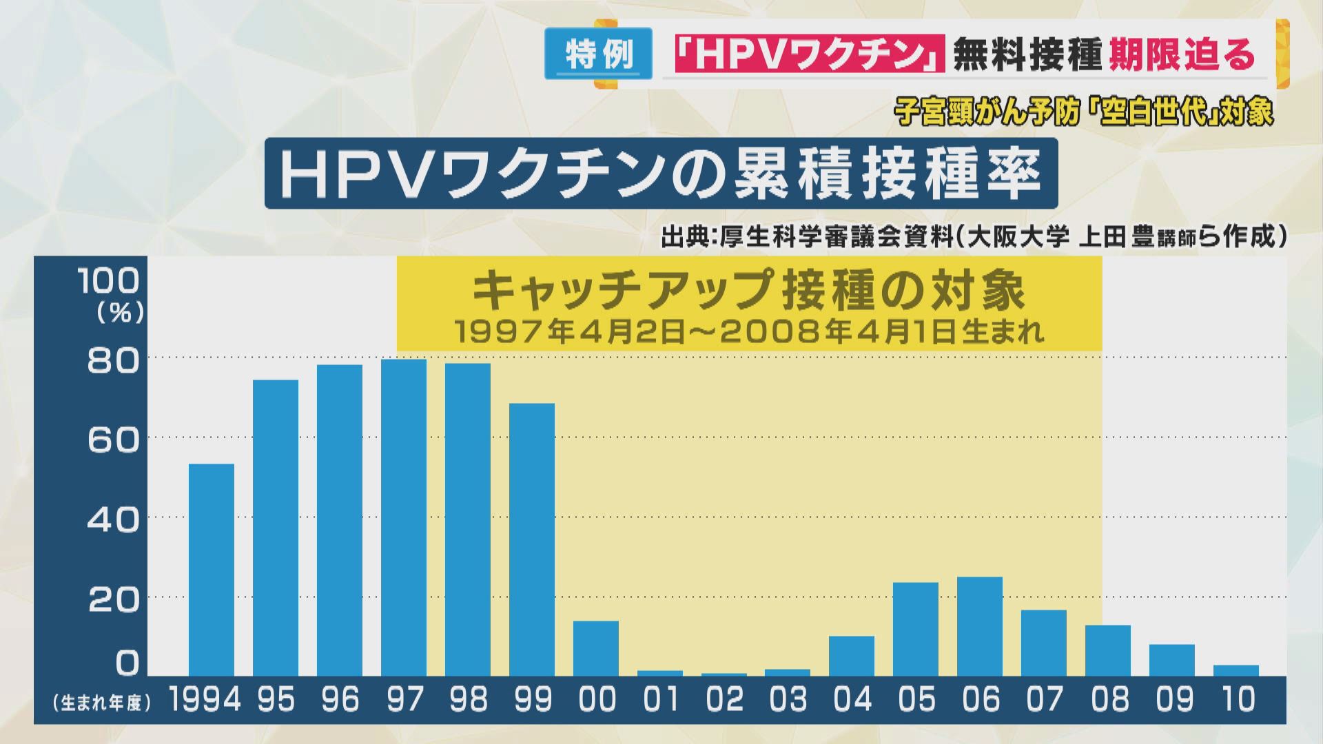 国は、誕生日が1997年4月2日から2008年4月1日までの女性に対し、無料でワクチンを受けられる「キャッチアップ接種」を特例で実施しています。