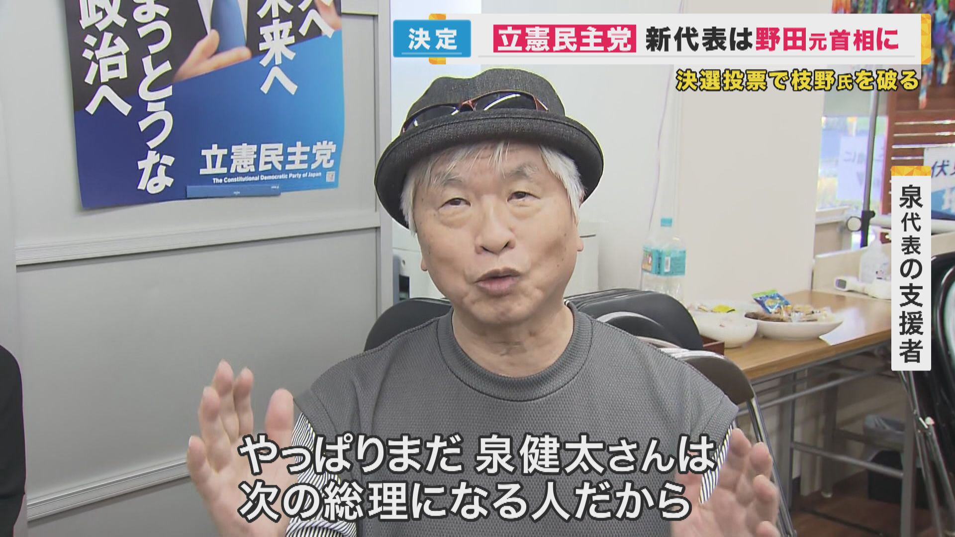 【泉代表の支援者】「泉健太さんがなれなかったのは残念ですけど、経験のある野田さんですから、政権交代に向けて一生懸命頑張ってもらいたい」