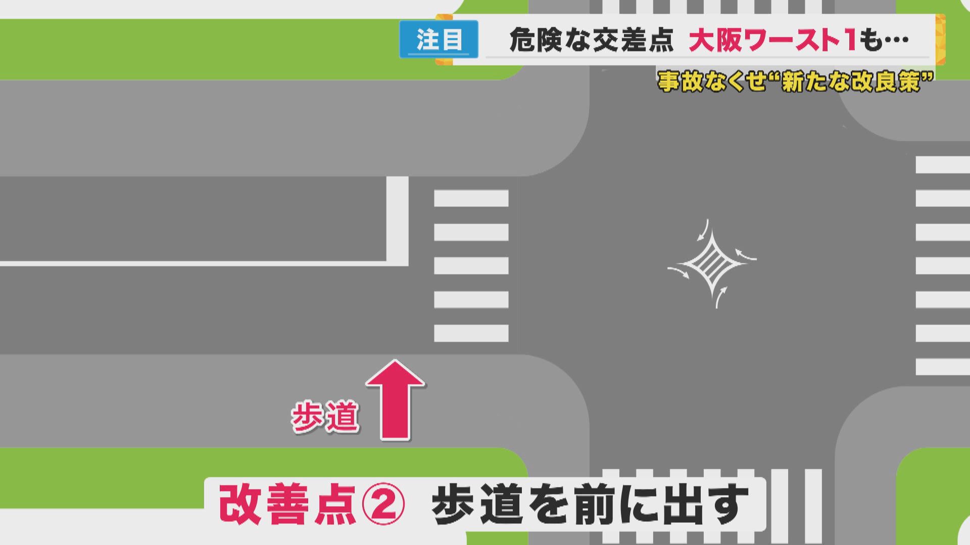 『事故多発交差点』ランキング常連の大阪 交差点のコンパクト化や横断歩道の距離を短くするなどの対策も