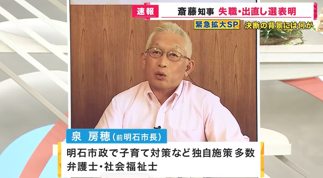 【前明石市長 泉房穂氏】「いや今回もうさすがにビックリですね。最初から解散も辞職もなかったら、失職ですから。何をそんなに悩んでいたんですかと思いました。失職したら知事選挙まで50日以内ですから、そこから考えてもいい話なのに、どうかと思いました」