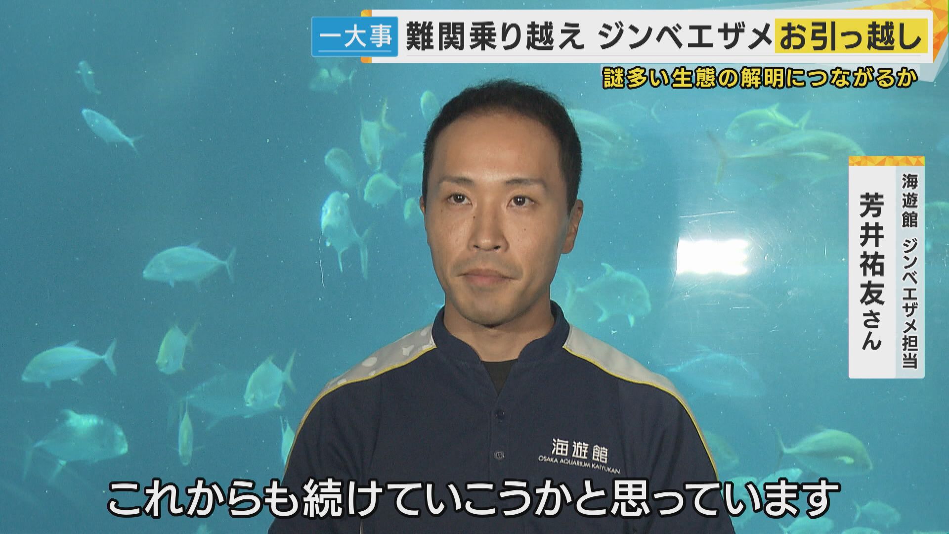 【海遊館ジンベエザメ担当 芳井祐友さん】「水槽で飼育していたジンベエザメが、野生に出てもしっかり生活できるのかっていうのを把握するうえでもすごく大切。これからも続けていこうと思っています」