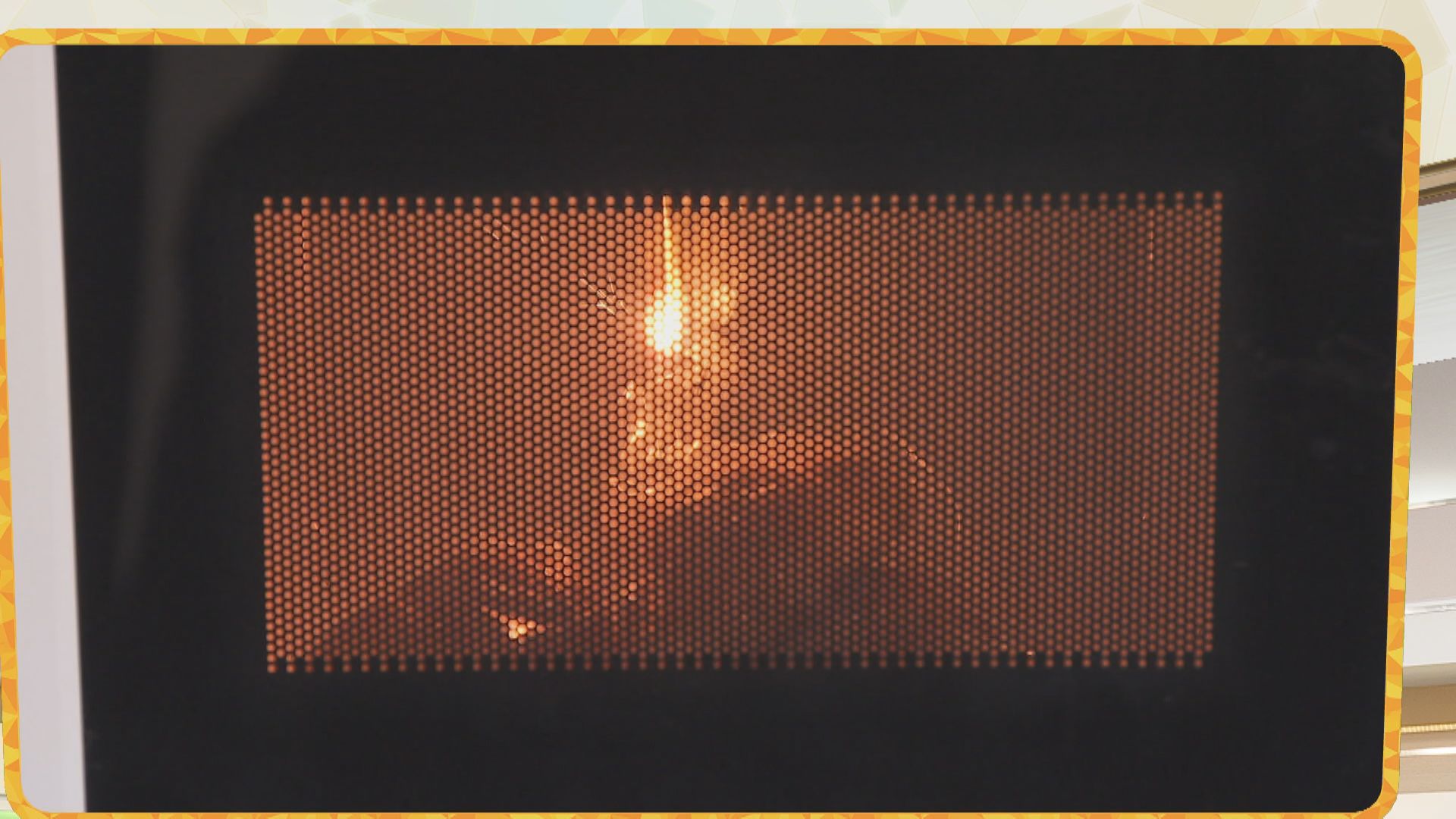 例えば金属ワイヤーを付けたままパンを温めてみても… やっぱり発火します! 電子レンジのマイクロ波が、金属に反射して「放電」が発生し、火災などを引き起こす恐れがあるということです。