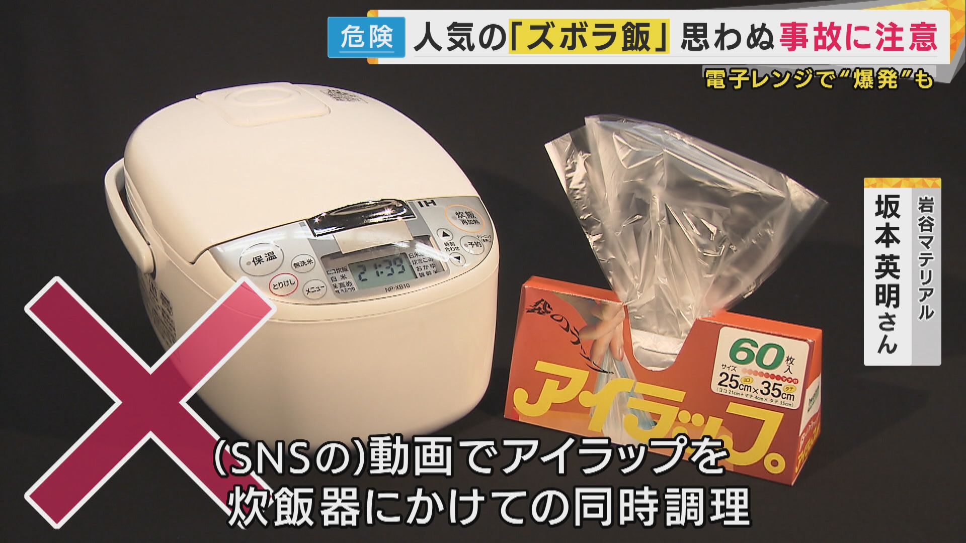 【アイラップを販売 岩谷マテリアル 坂本英明さん】「ボンという音がして見てみると、蓋が開いていたとか。そういった投稿が一時期、相次いでまして(SNSの)動画でアイラップを炊飯器にかけて同時調理、便利な使いかたみたいなので紹介をされたようでメーカーが記載した注意事項に沿って使用をしてほしい」