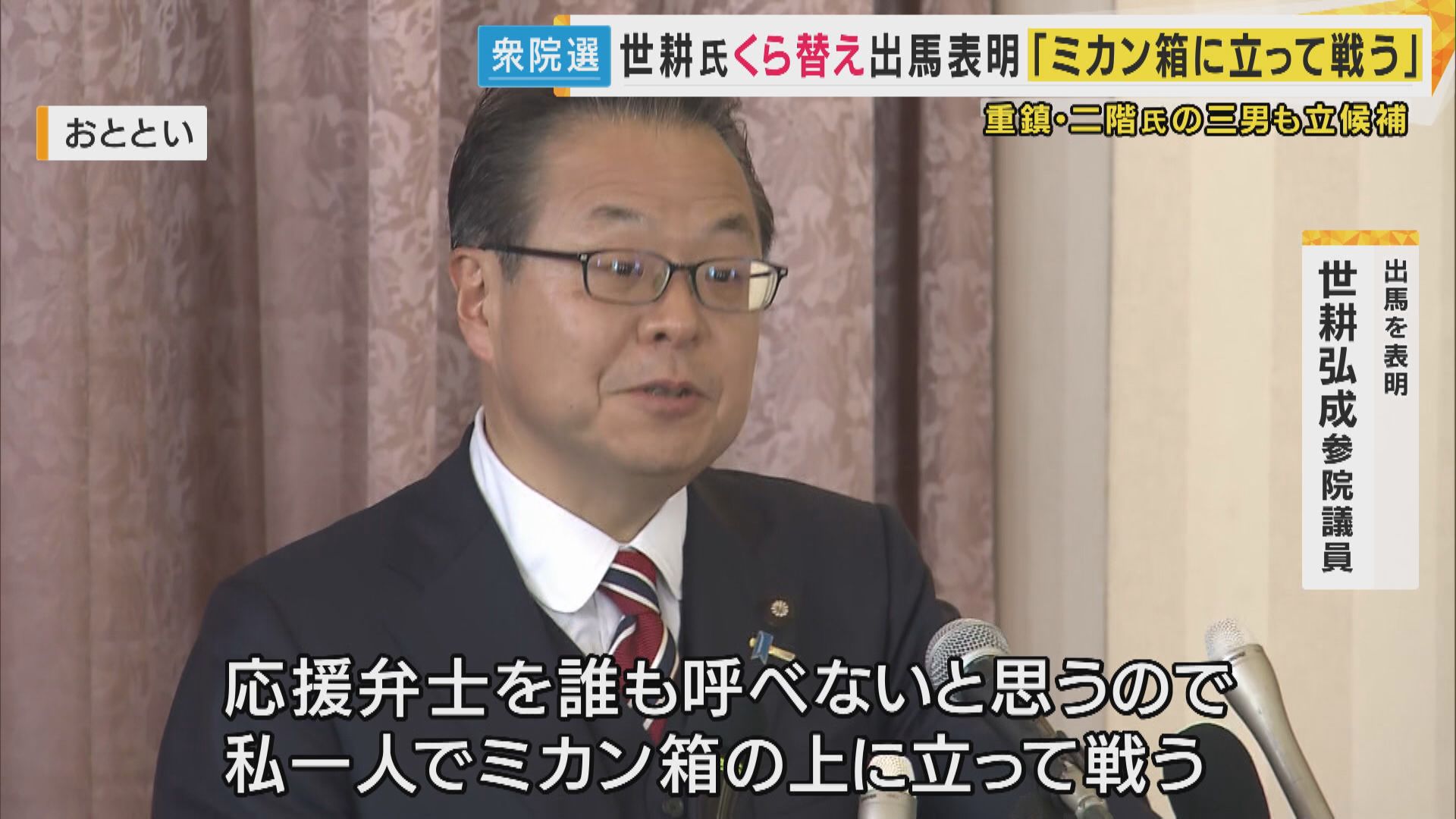【世耕弘成 参議院議員】「現在は参議院議員でありますが、この衆院選に和歌山県第2区から出馬することを決意しました」