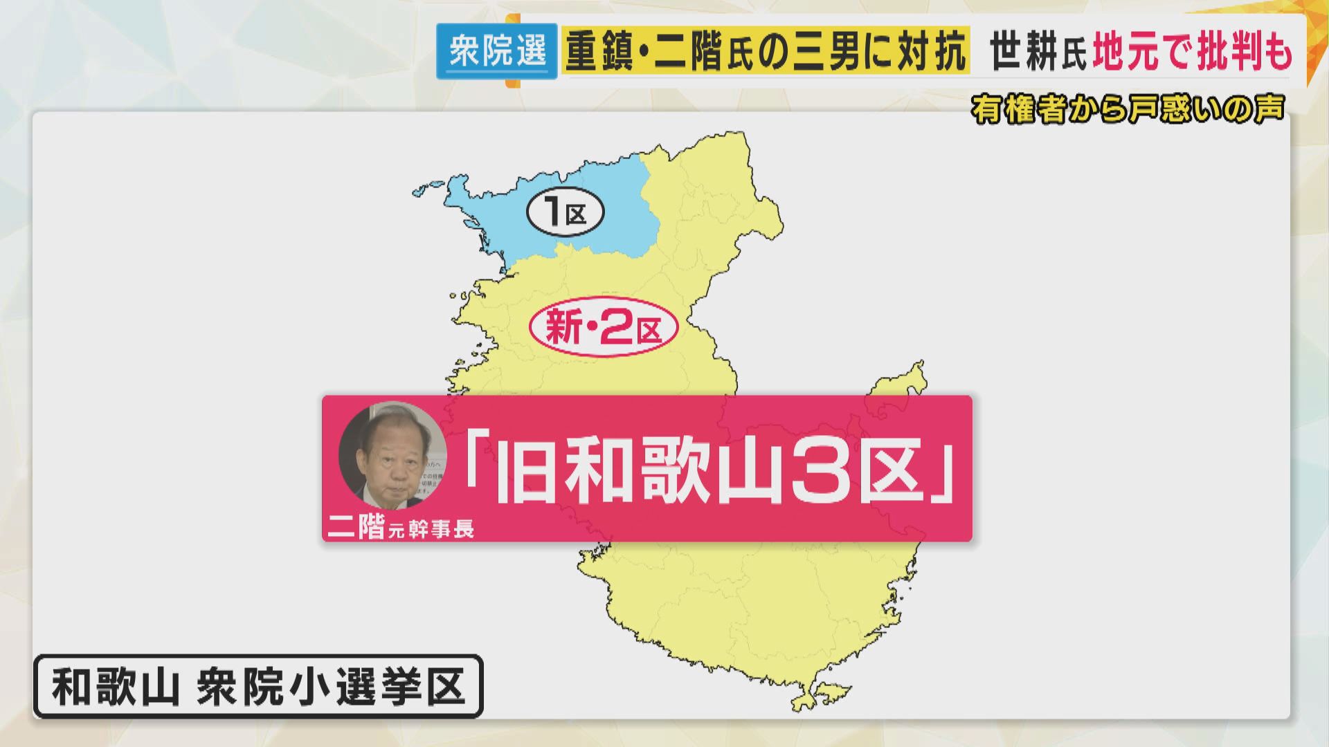 今回の選挙から、区割りの変更に伴い、和歌山2区には二階元幹事長の選挙区「旧和歌山3区」が含まれる形になります。