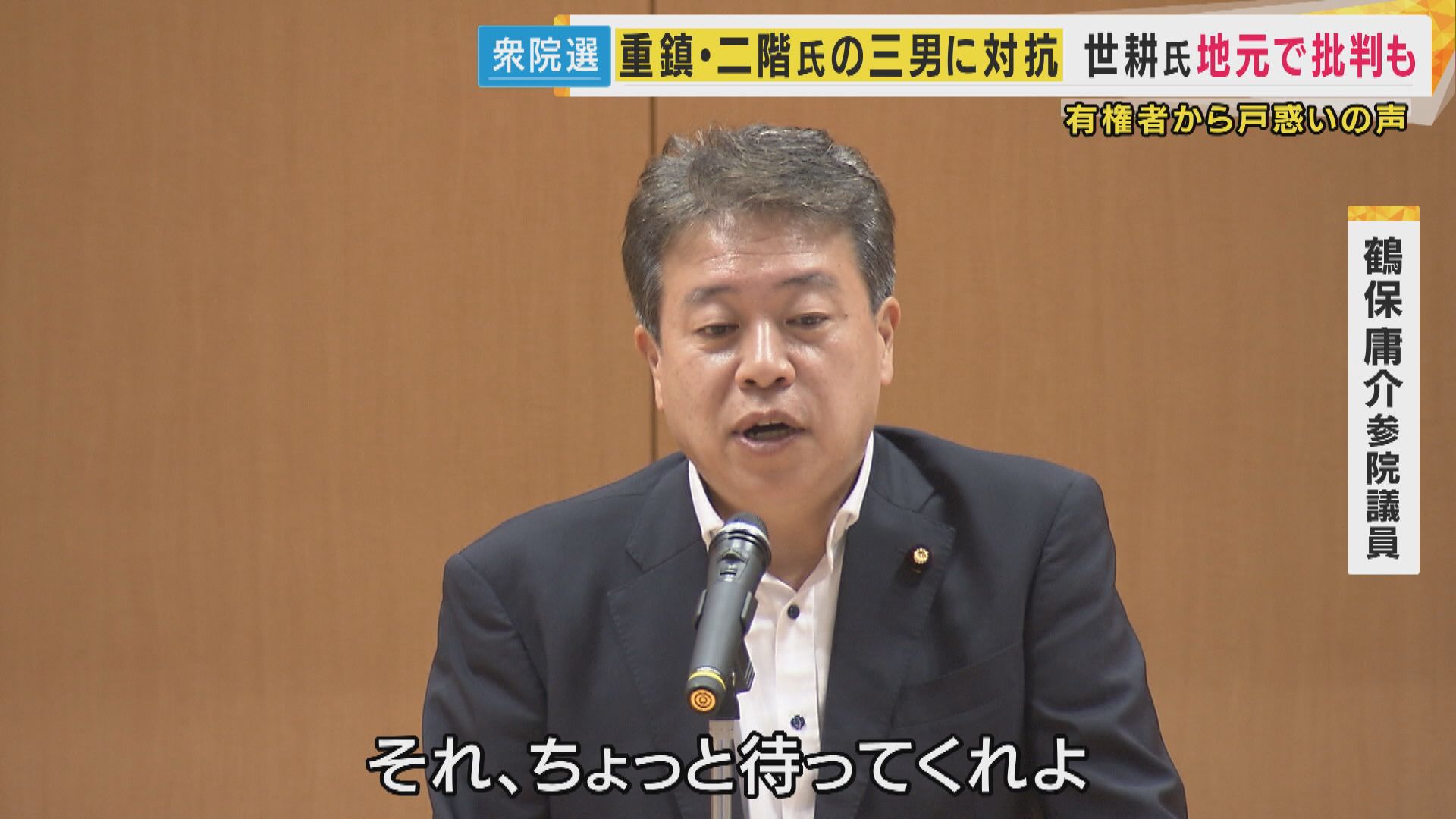【鶴保庸介参院議員】「この人(伸康氏)が、公認候補として出られた後に、立候補されてるわけでしょう。それ、ちょっと待ってくれよ」
