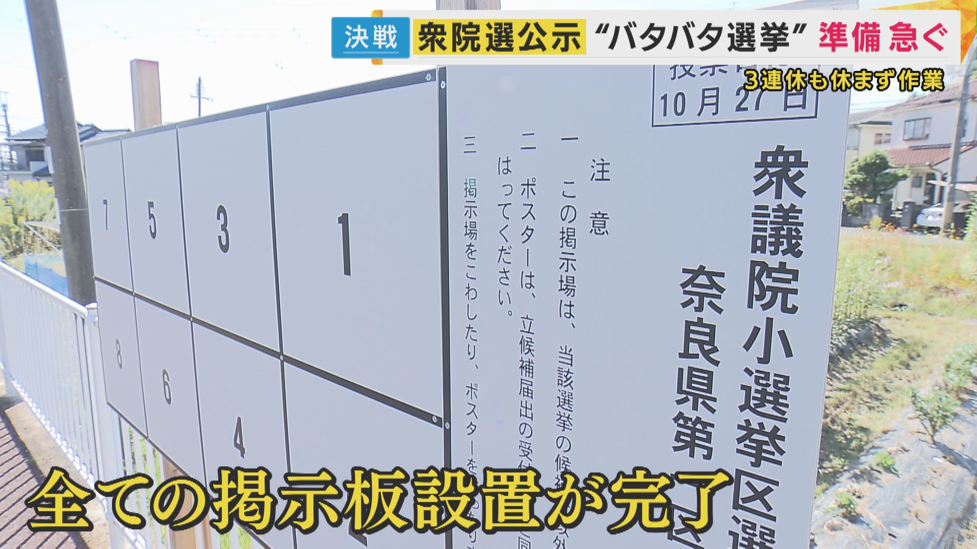 解散から投開票まで、わずか18日間の異例の“超短期決戦”となり、奈良県生駒市では選挙ポスターを貼る掲示板の設置が、急ピッチで進められていました。
