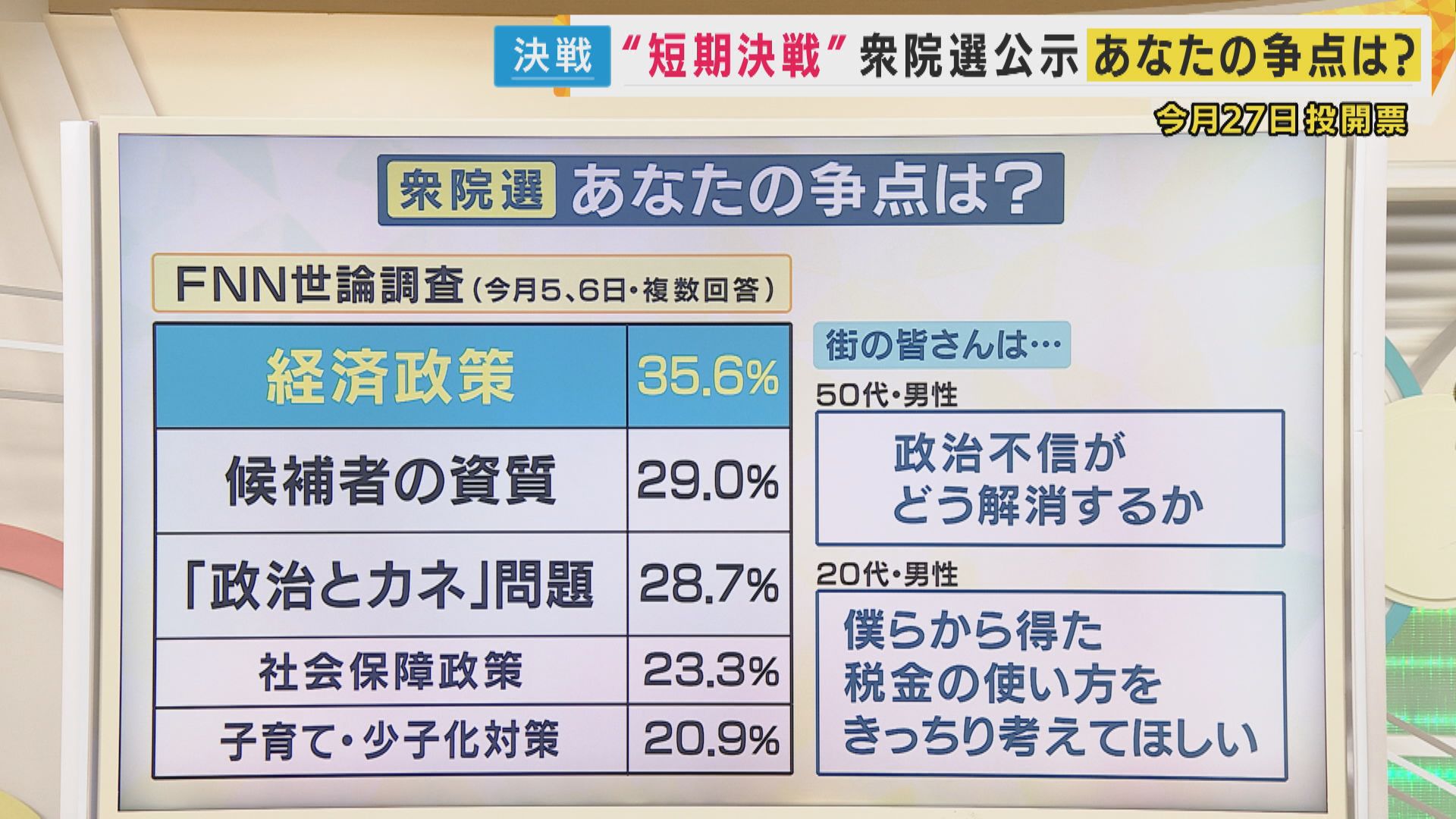【吉原功兼キャスター】「15日、公示された衆院選ですが、街の皆さんの争点は何でしょうか?」