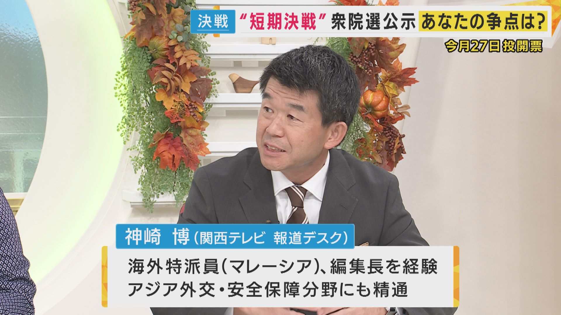 【関西テレビ 神崎博報道デスク】「われわれメディアは、どうしても『政治とカネの問題』を取り上げがちなのですが、生活者目線で言うと、皆さんぞれぞれ、自分が一番関心があることがあると思うんですよね。例えば『教育問題』であれば、無償化はどこの政党が、どの候補者がやってくれるのか、とか、お金の話でいうと、『時給1500円』って言っているのは、どこの政党のどの候補者で、それをいつまでやってくれるのか?とか、そういうことを色々並べていって、自分が投票する時に、自分が一番関心があることを、強く言っている候補者、この政党に入れようと判断して頂いたら良いと思います」