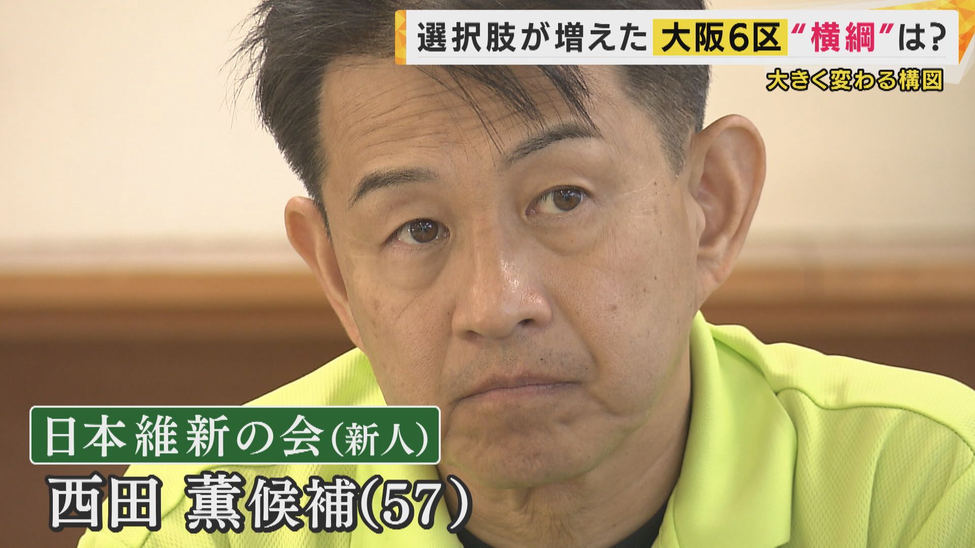 【維新・新人 西田薫さん】「ここ(大阪6区)を勝つことができれば、自公の連立はこれから必要なのかという問題提起ができる。日本のこれからの政治がかかっている選挙区と位置付けている」