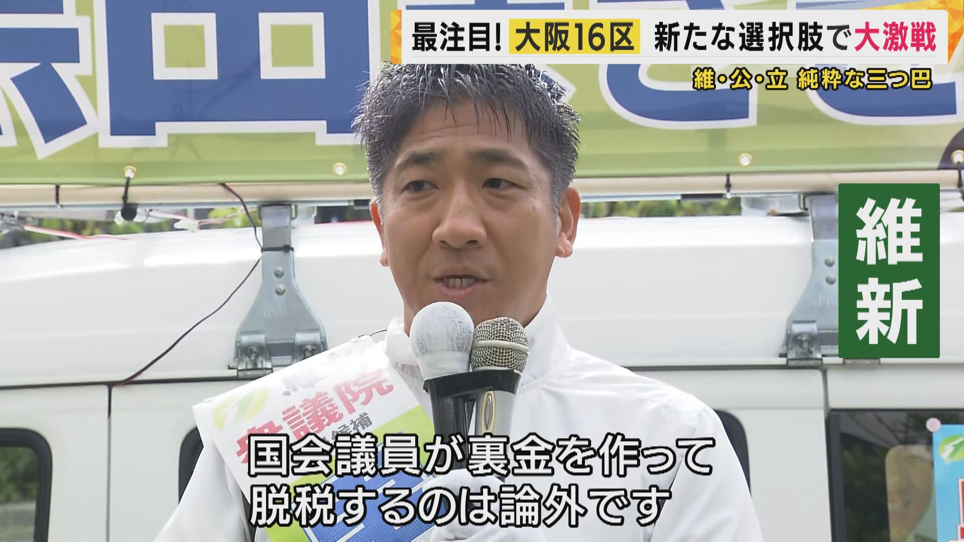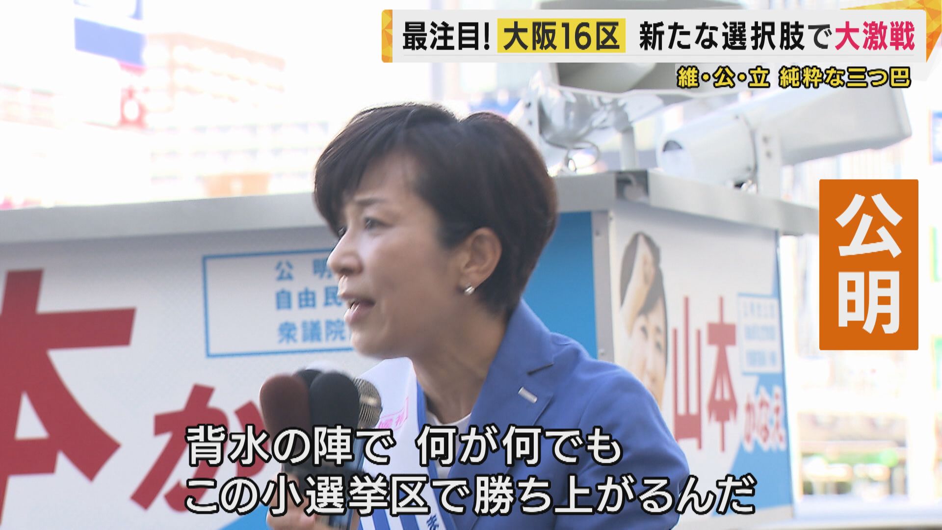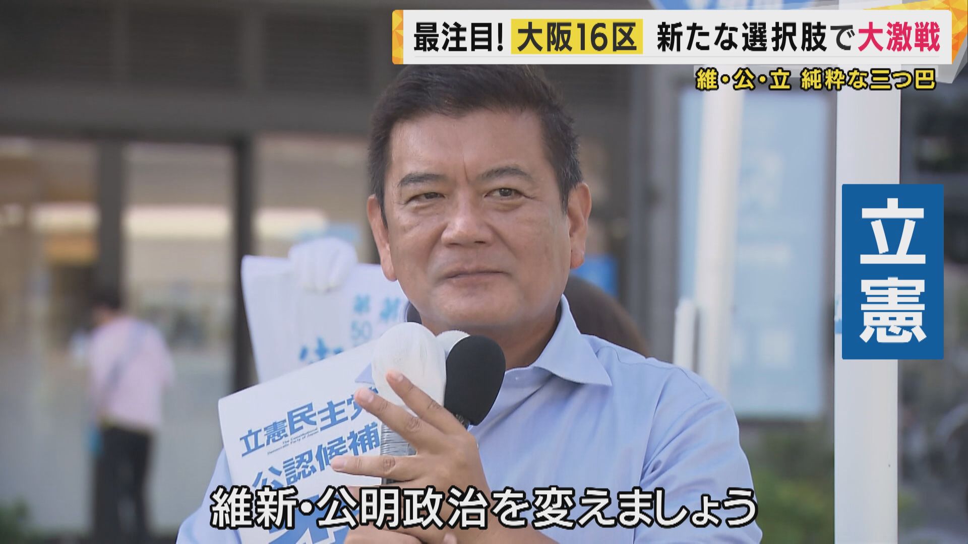 維新対公明、初めての直接対決に加えて、唯一の前職、立憲。3つ巴の大激戦となっています。