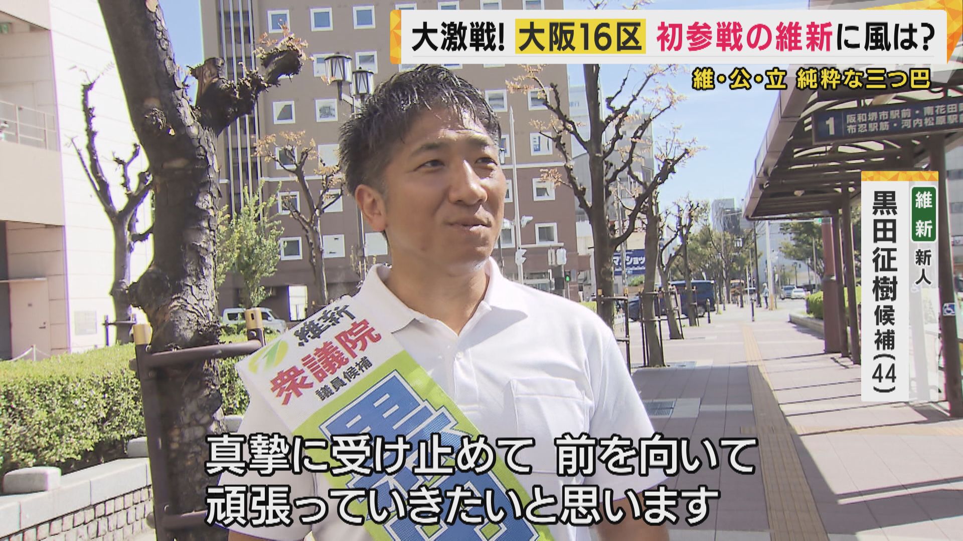 【維新・新人 黒田征樹候補】「いい反応もあれば、厳しいお言葉をいただく場面もありましたけど、それも含めて、今の維新や自分への評価だと思ってるので、真摯に受け止めて、前を向いて頑張っていきたいと思います」