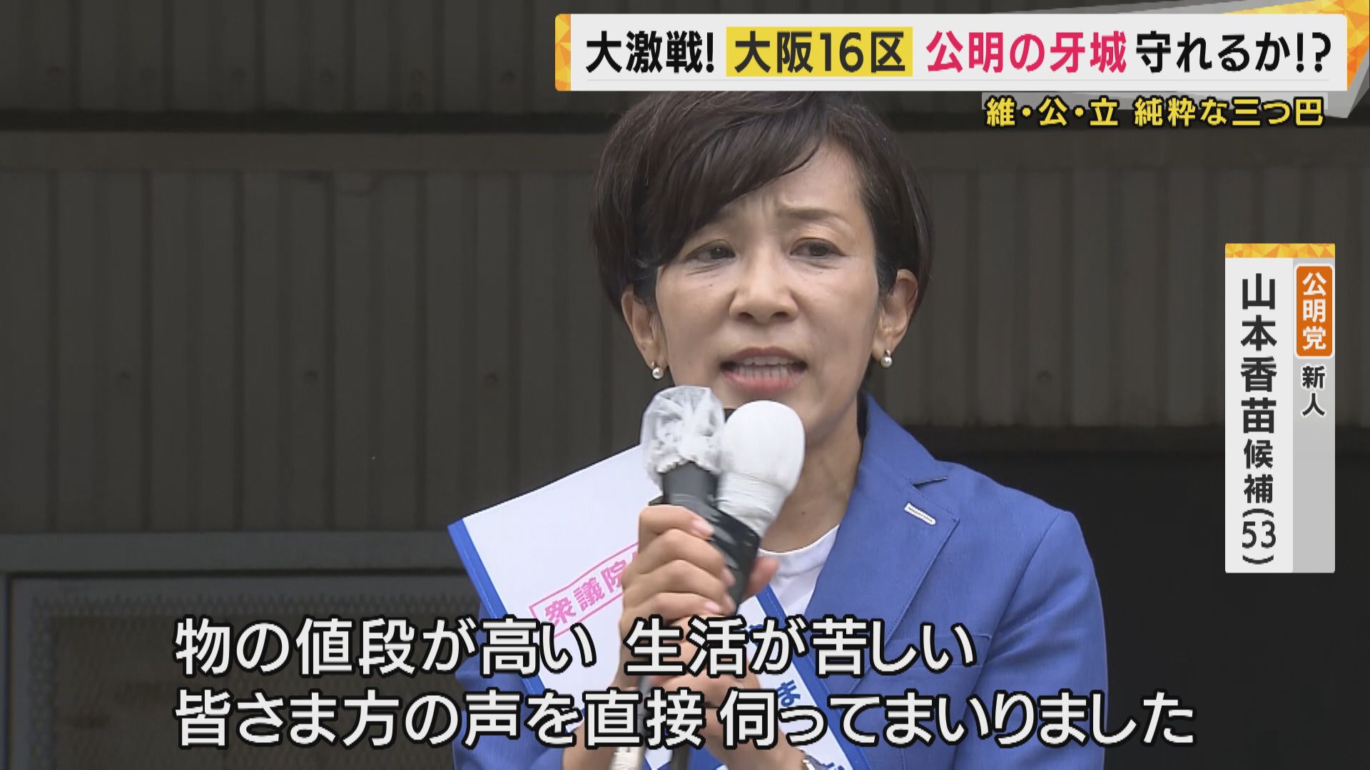 【公明党・新人 山本香苗候補(53)】「小選挙区で1番じゃないといけない。2番じゃダメなんです。1番じゃないとダメなんです。是非ともみなさん、山本香苗を衆議院に送り出していただきたい。勝たせてください。よろしくお願いします」