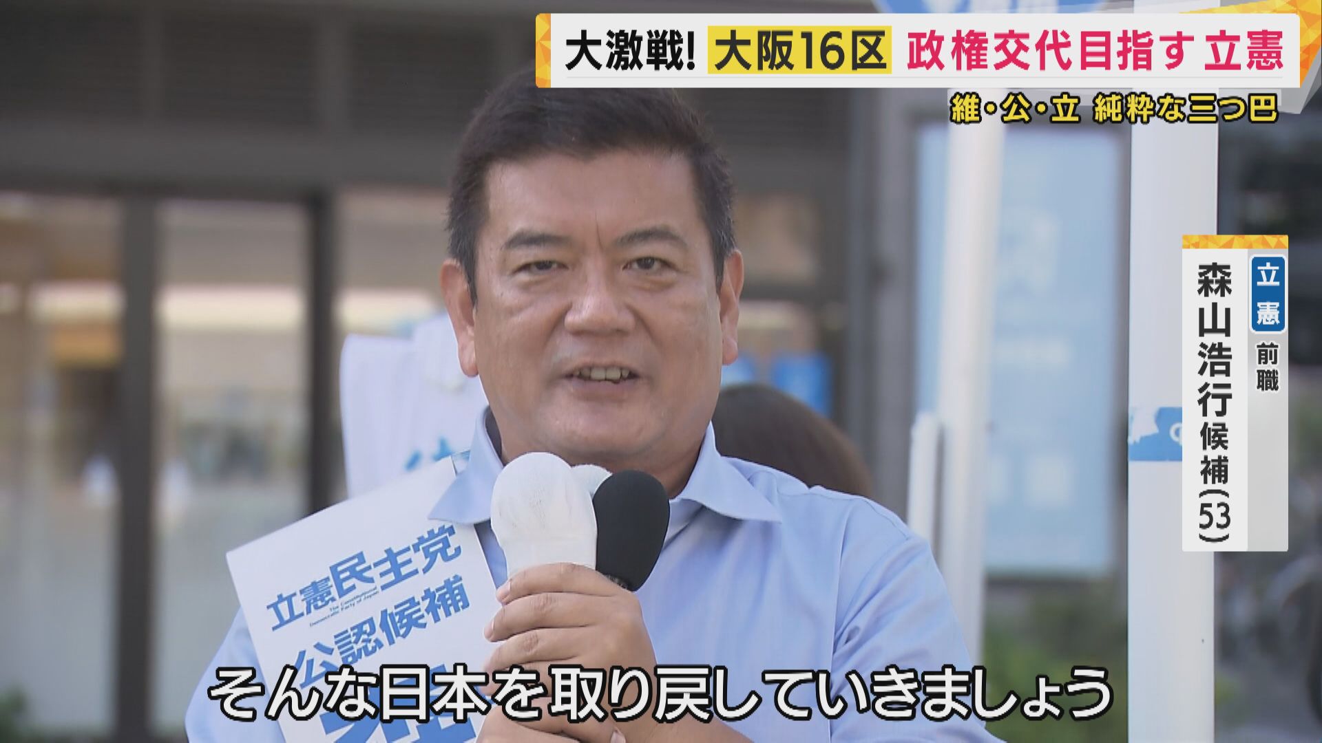 【立憲・前職 森山浩行候補(53)】「政権交代で政治の大掃除。維新・公明の政治を変えましょう」