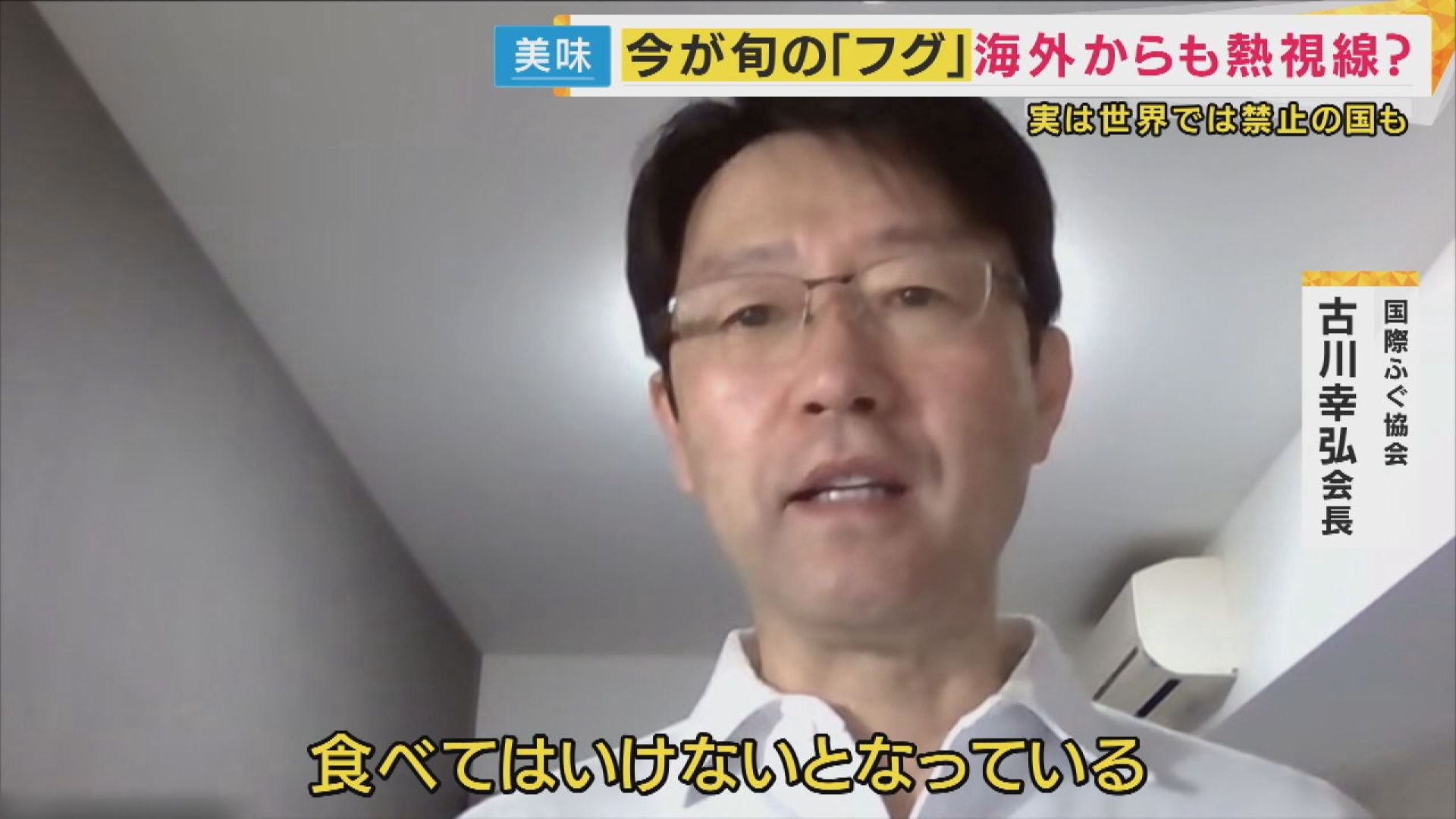 【国際ふぐ協会 古川幸弘会長】「世界中、ほとんどの国でふぐは禁食になっています。食中毒が起きて死んだり、健康被害を起こしたりするので食べてはいけないとなっている」