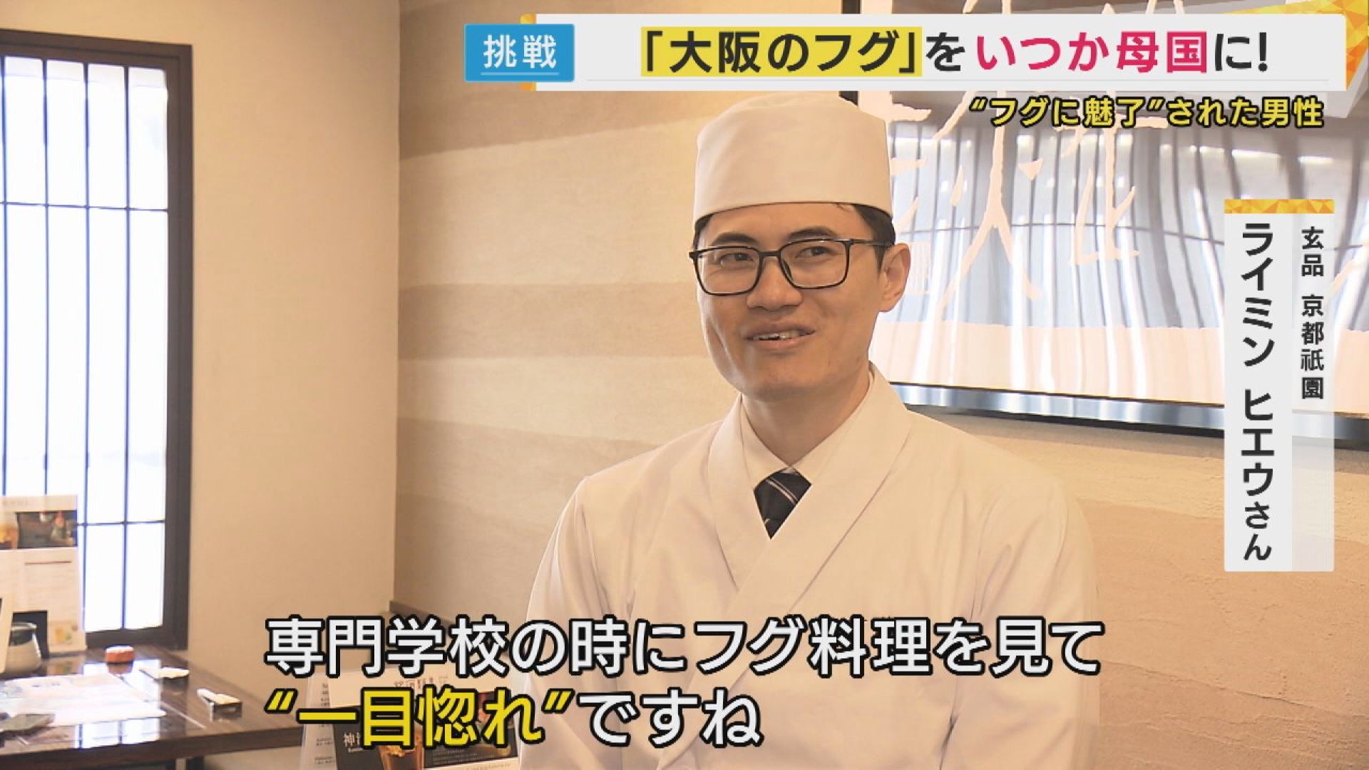 【玄品 京都祇園 ライミン・ヒエウさん】「専門学校の時に、ふぐ料理を見て“一目ぼれ”ですね。“てっさ”はすごく美しいですね、繊細で」