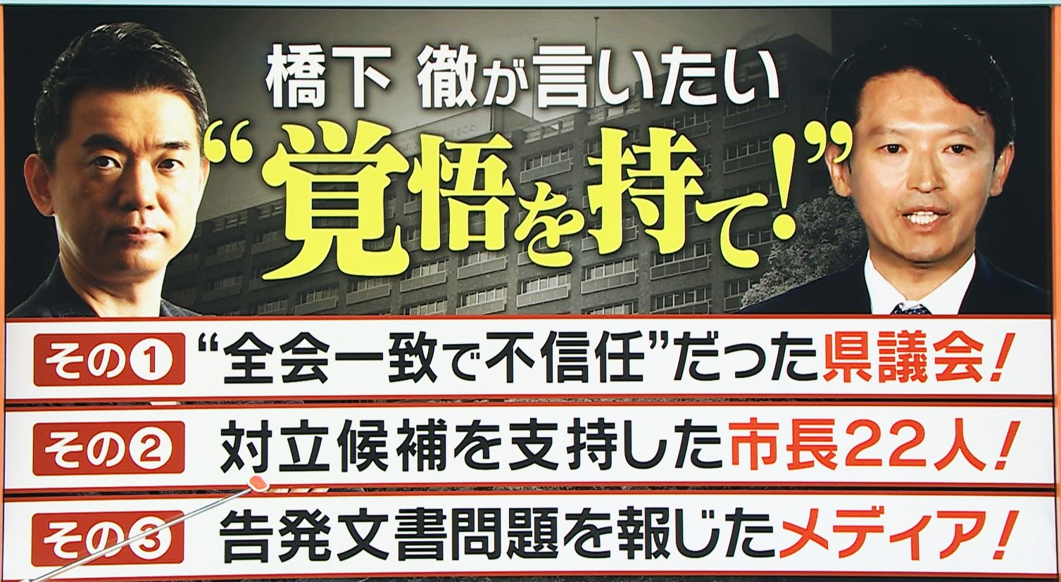斎藤知事再選に橋下徹氏「民意を得たから、全部チャラになる問題ではない」議会やマスコミは「覚悟」を持て